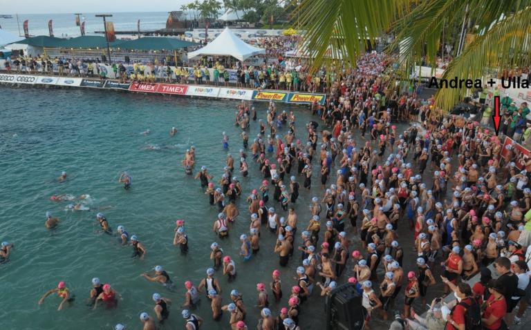 Unsere innere Uhr tickt noch immer in Deutschland. Pünktlich um 3.oo Uhr haben Werner und ich ausgeschlafen. Wir liegen dann immer eine Weile wach bis wir langsam wieder einschlafen. Es ist schon beeindruckend, wenn man im Bett liegt und das Meer und die Wellen hört. Pünktlich um 6:00 Uhr klingelt der Wecker. Nach einem kurzen Frühstück packen wir unsere Schwimmsachen und dann geht es in Richtung Pier. Werner fährt mit dem Jeep und wir anderen Joggen an den Strand. Es ist Wahnsinn wie viele Leute bereits morgens in aller Frühe am Strand sind. Inzwischen gibt es auch von Ironman einen Stand an dem wir unsere Sachen abgeben können. Das ist ganz praktisch, da man keine Angst vor Diebstahl haben muss. Es gibt auch einige Triathleten, die mit dem Rad kommen.