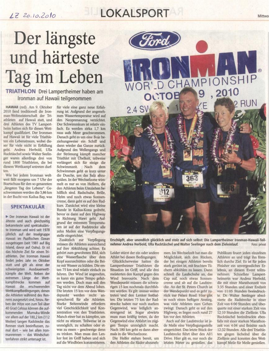 Die Leute auf Hawaii im Wechselbereich, in der Verpflegung einfach überall sind dermaßen freundlich und hilfsbereit. Es ist schon erstaunlich, wie man hier als Athlet behandelt wird. Auch im Zielbereich bekommt man von jedem Helfer und sonstigen Leuten gratuliert. Das kenne ich in Deutschland nicht. Man hört ständig „congratulations“. Man fühlt sich saugut dabei. Zuhause angekommen gibt es eine warme Dusche und die Welt ist wieder in Ordnung. Wenn meine Füße nicht so sehr wehtun würden, wäre mir gar nicht bewusst, dass ich gerade einen Ironman hinter mir habe.