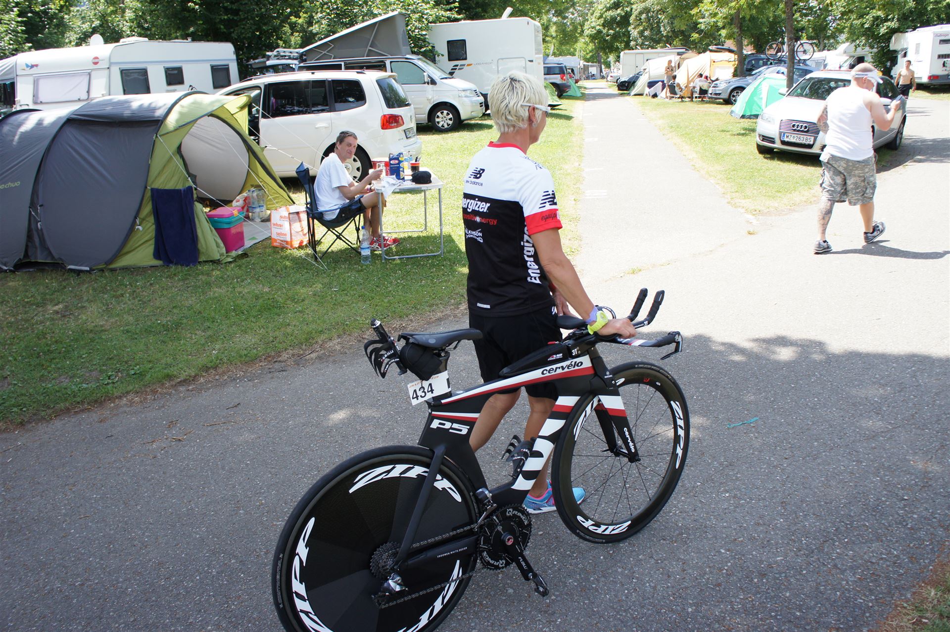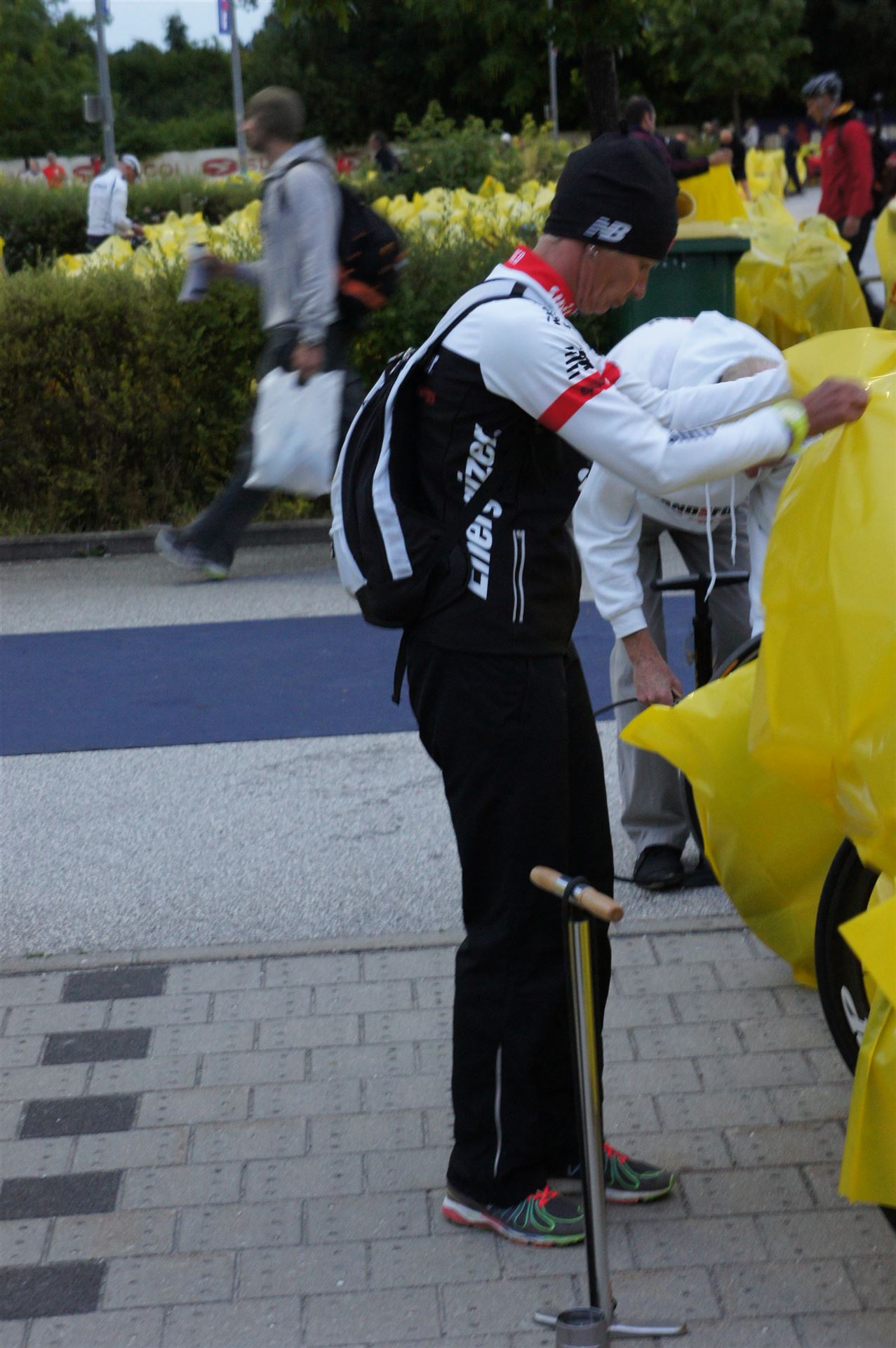 Ich prüfe noch einmal die Luft der Laufräder, fülle meine Riegels bzw. Gels auf und bringe die Radflaschen an.