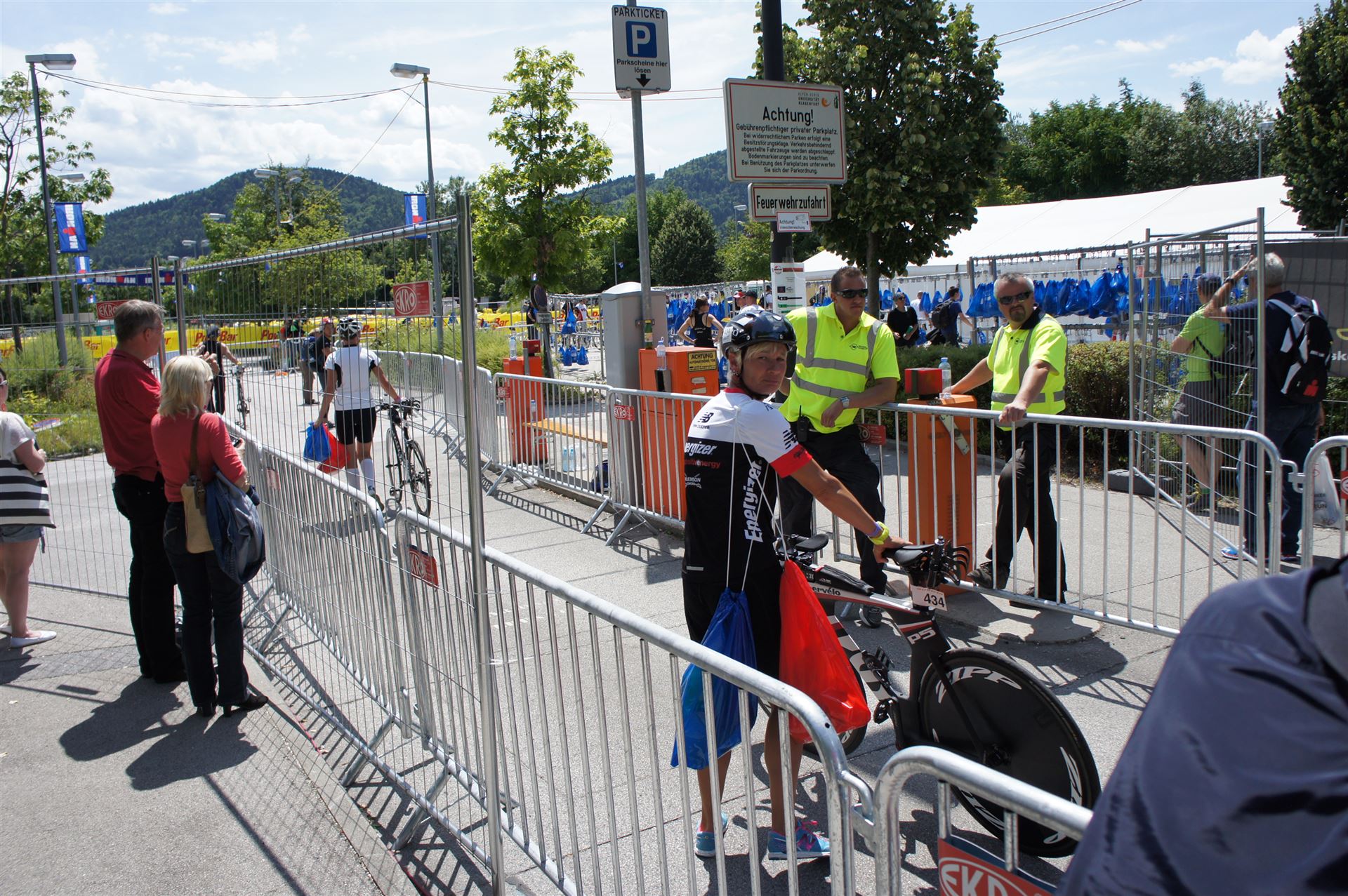 Die Wechselzone wird geöffnet, es sind nur ein paar Minuten zu Fuß.
