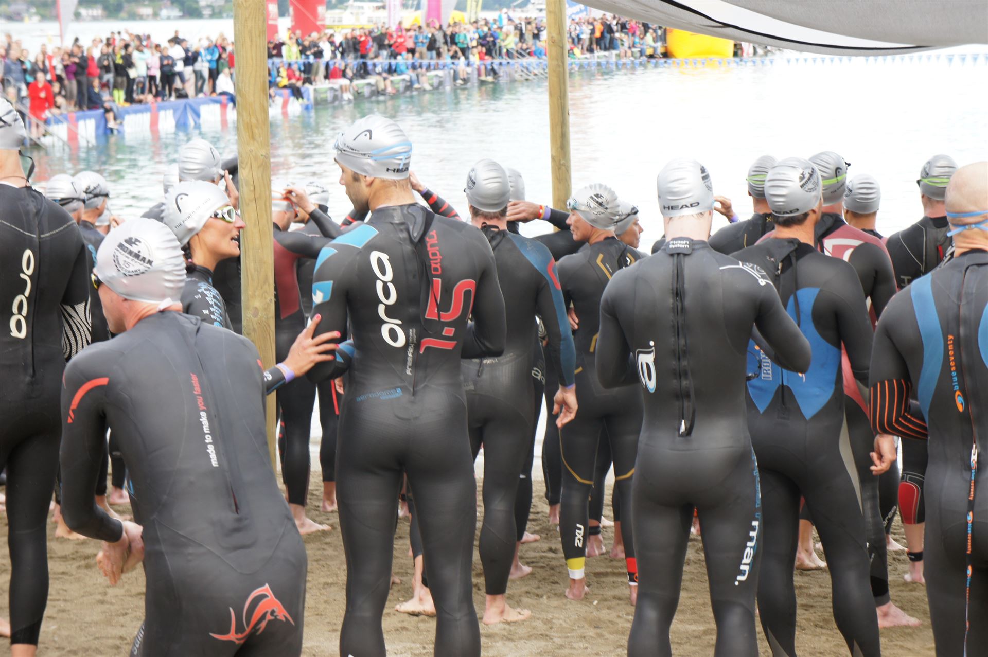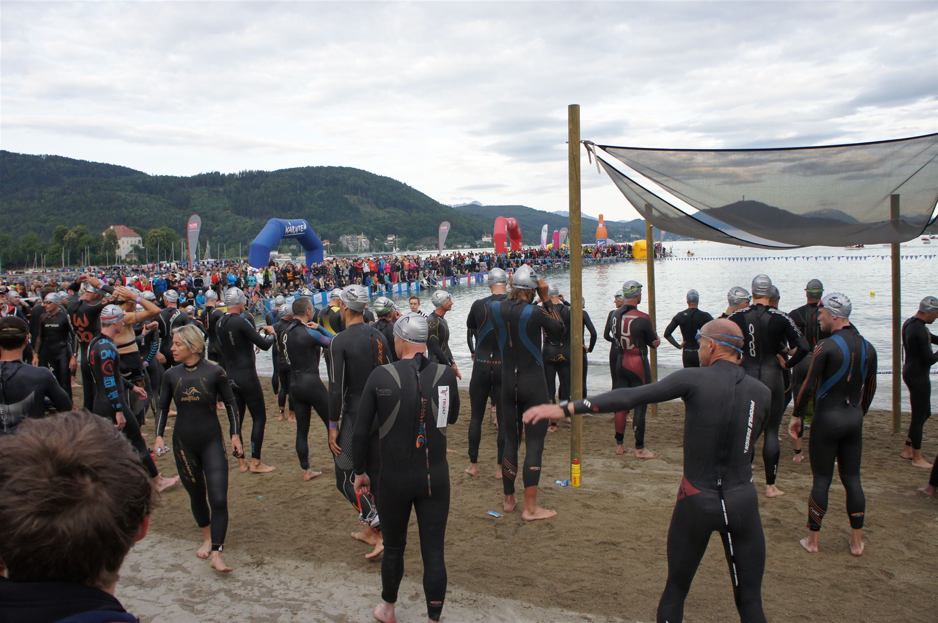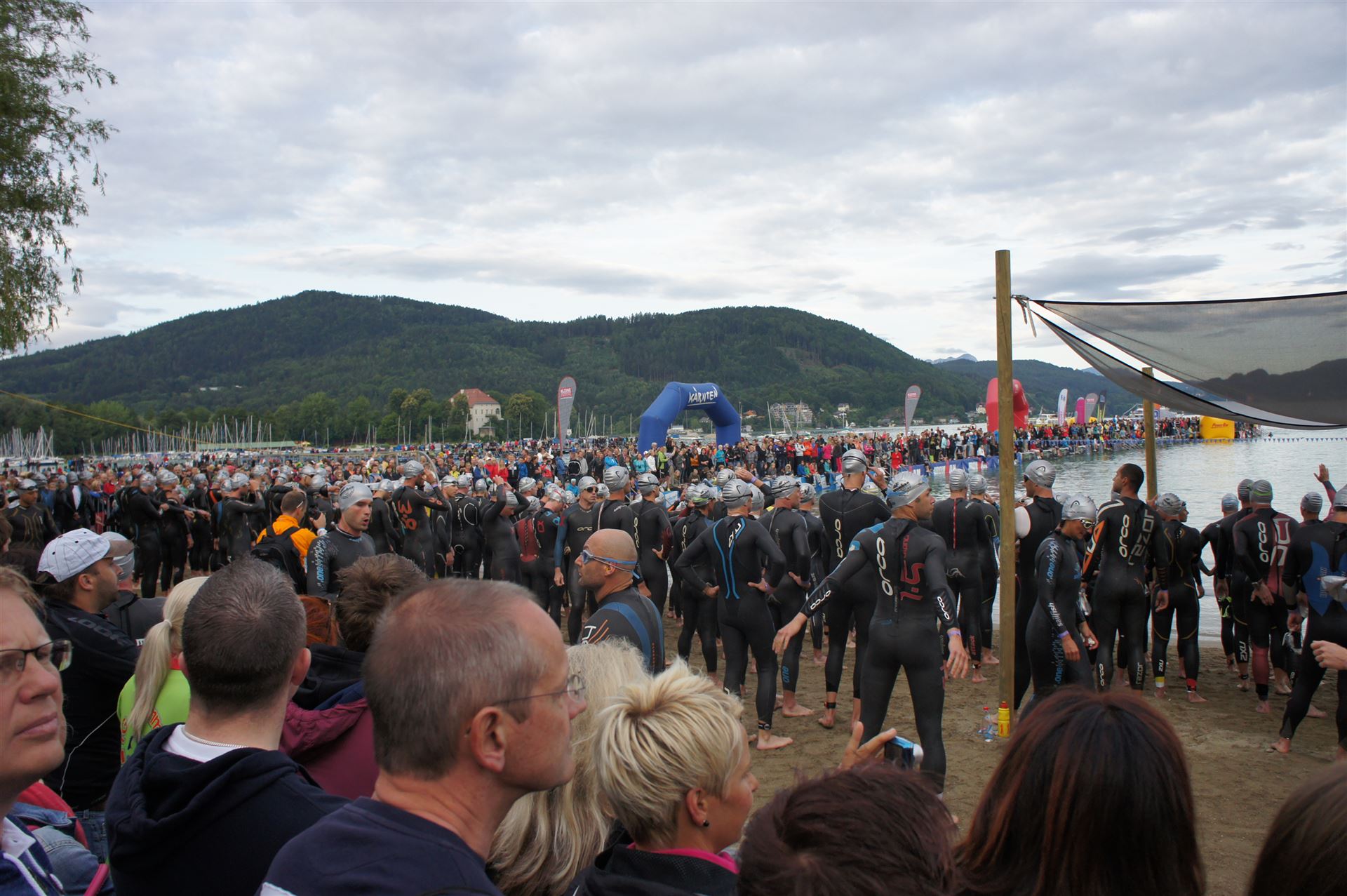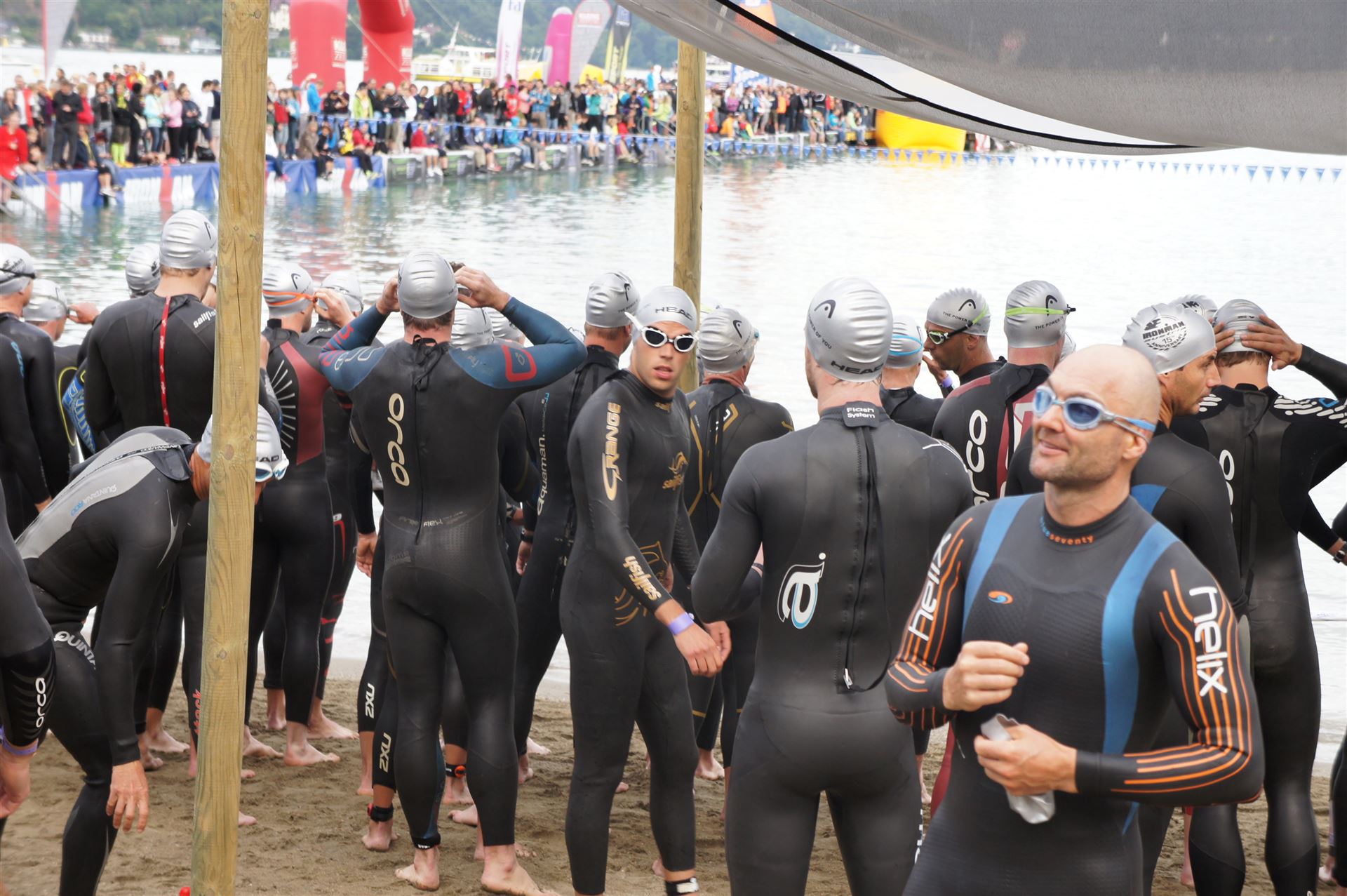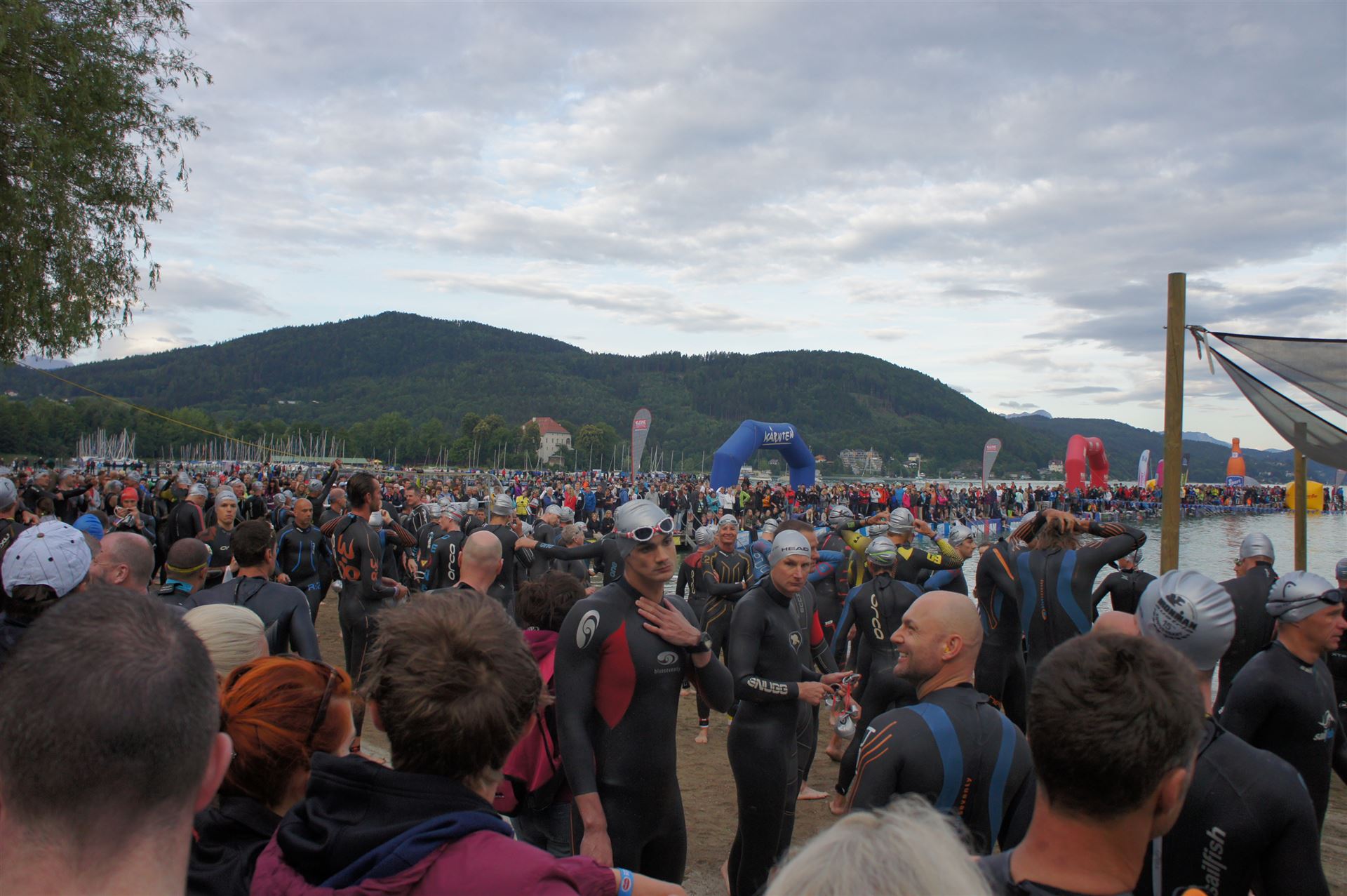 Wir gehen langsam zum Start in das Strandbad, es sind bereits viele Athleten und Zuschauer versammelt.