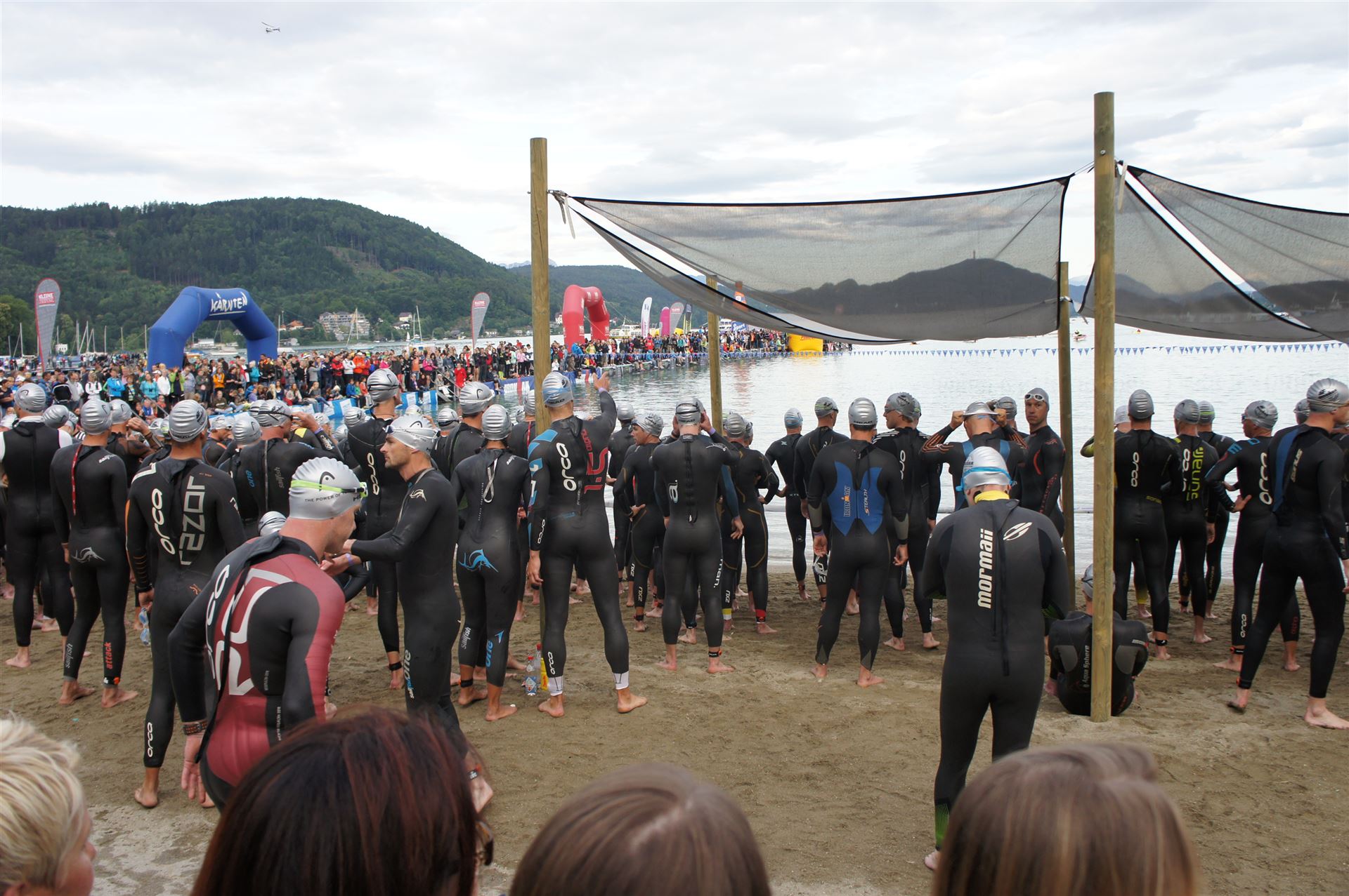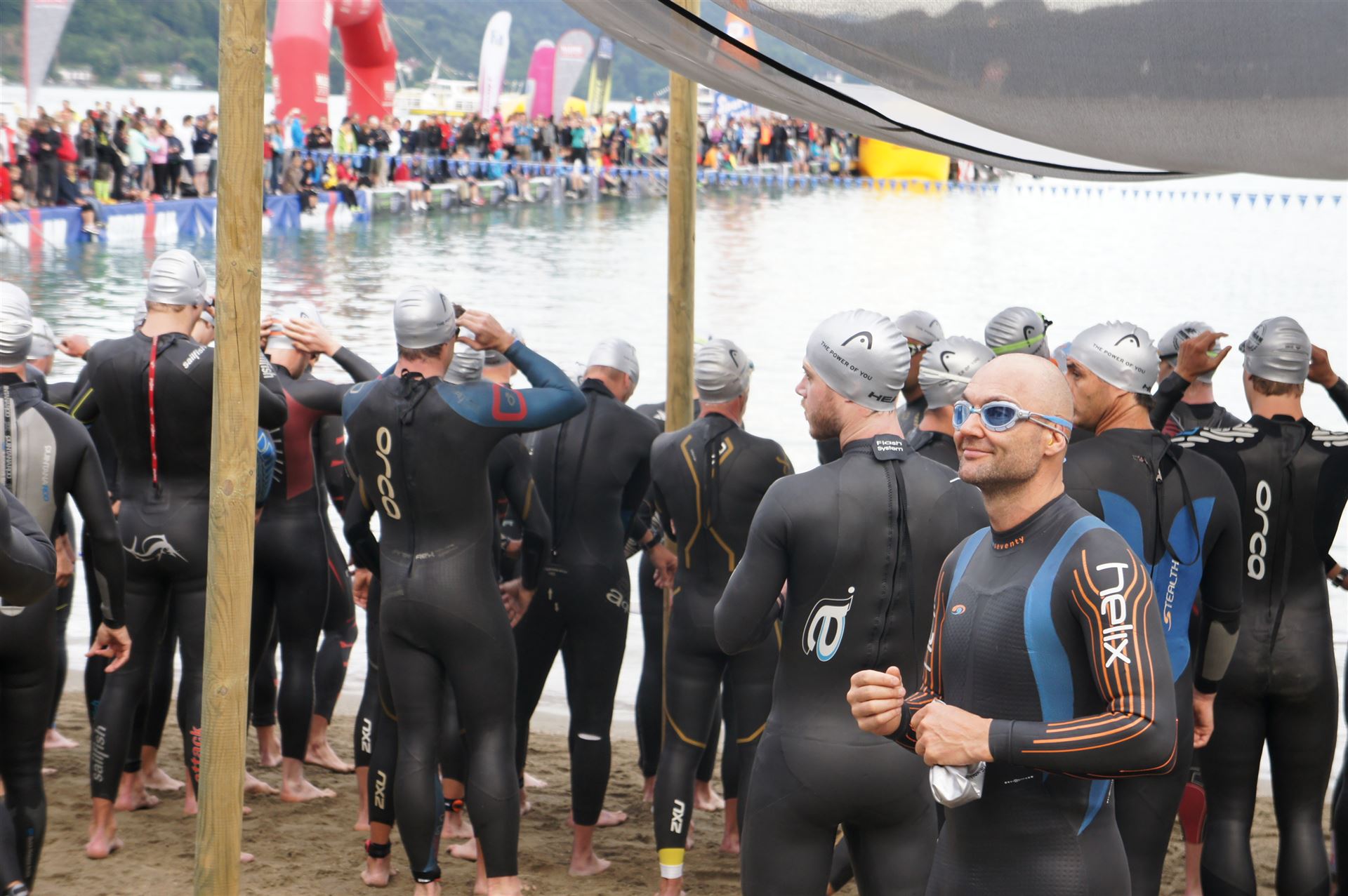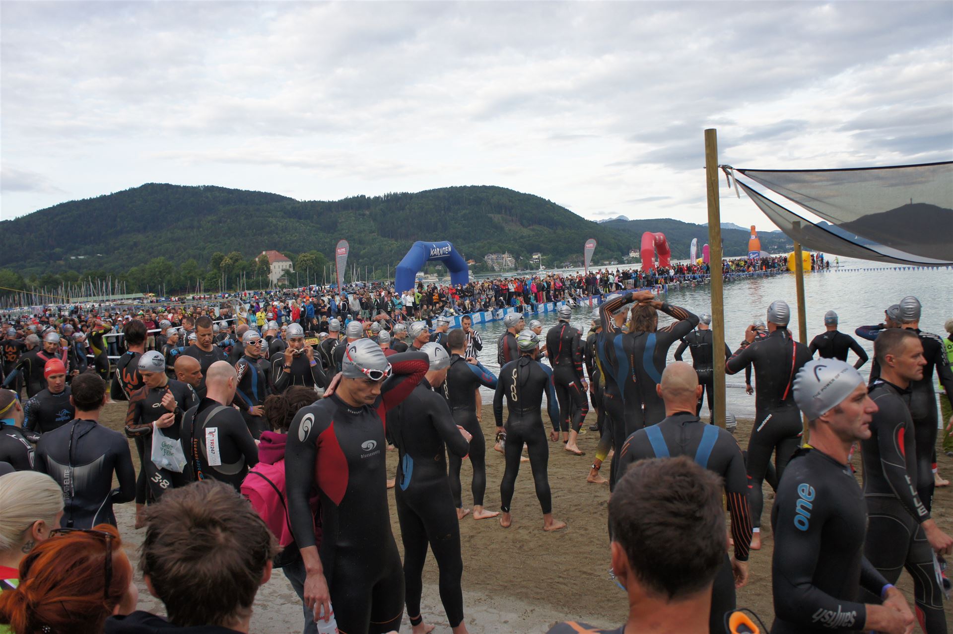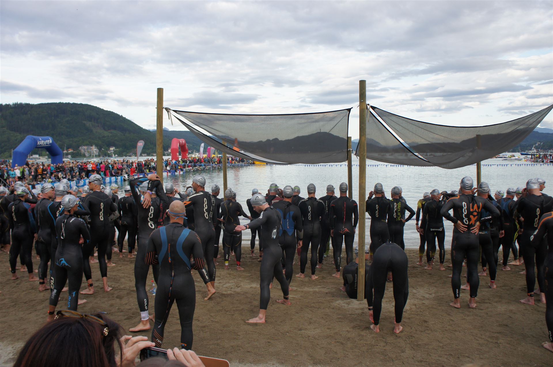 Wir gehen langsam zum Start in das Strandbad, es sind bereits viele Athleten und Zuschauer versammelt.