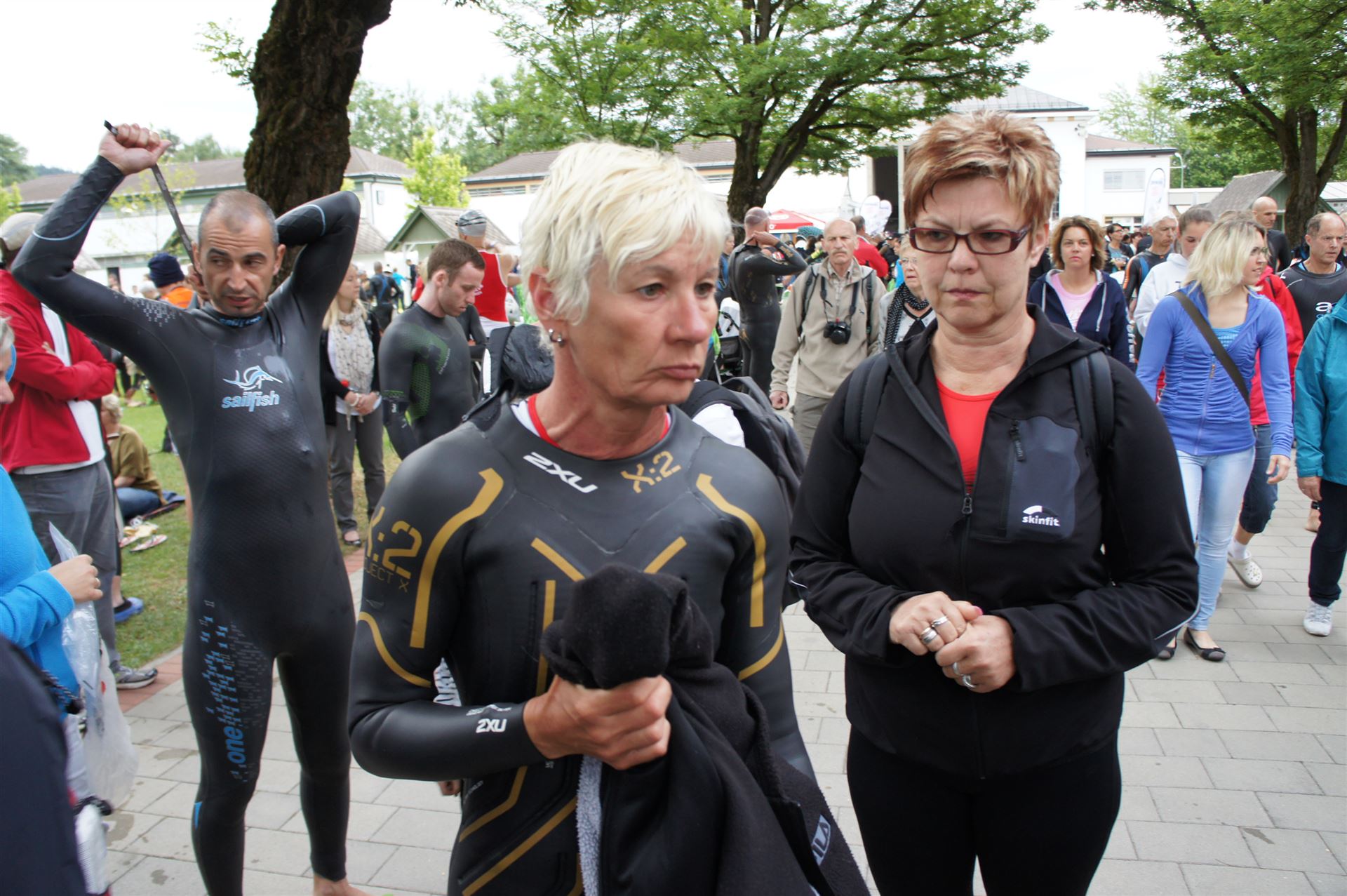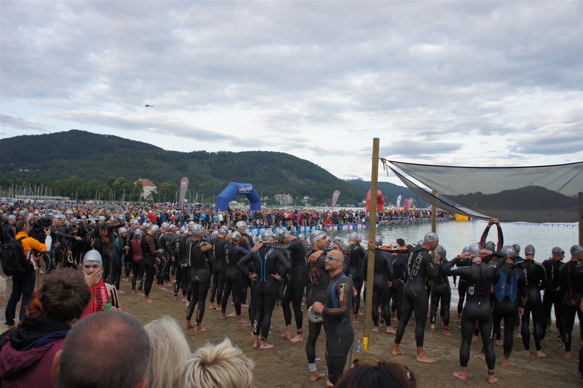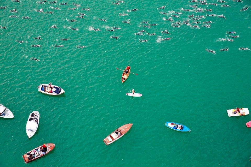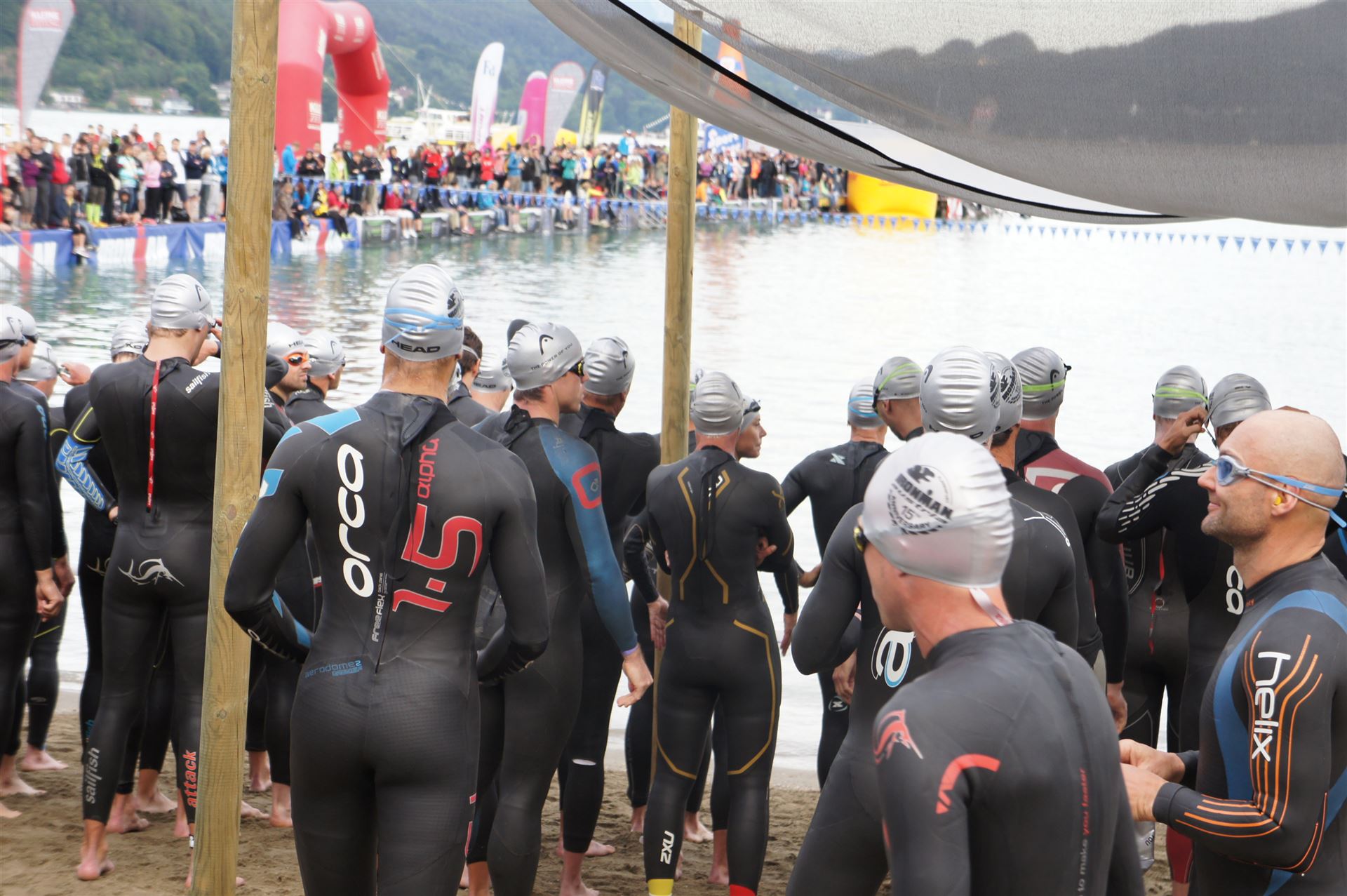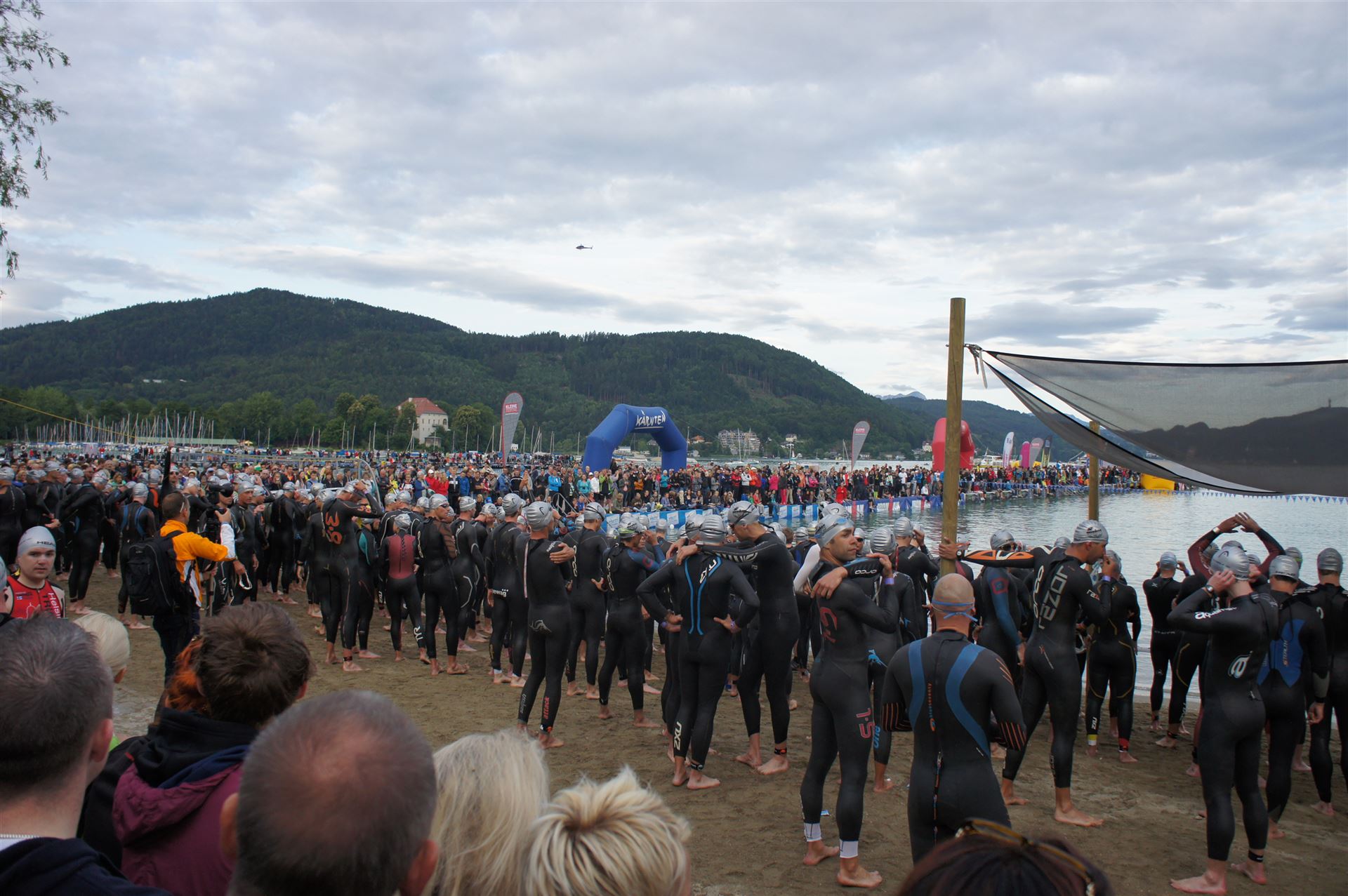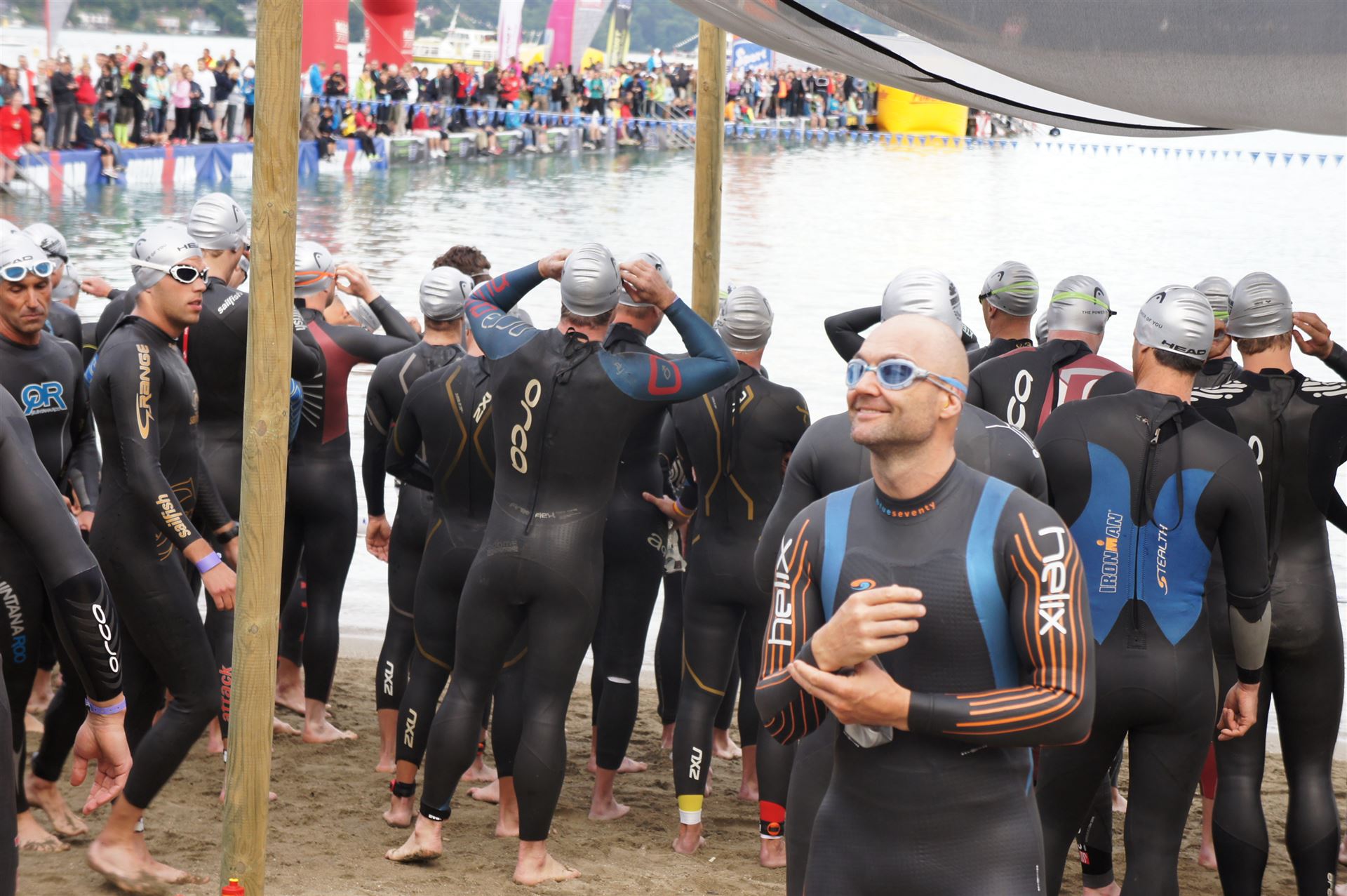 Wir gehen langsam zum Start in das Strandbad, es sind bereits viele Athleten und Zuschauer versammelt.
