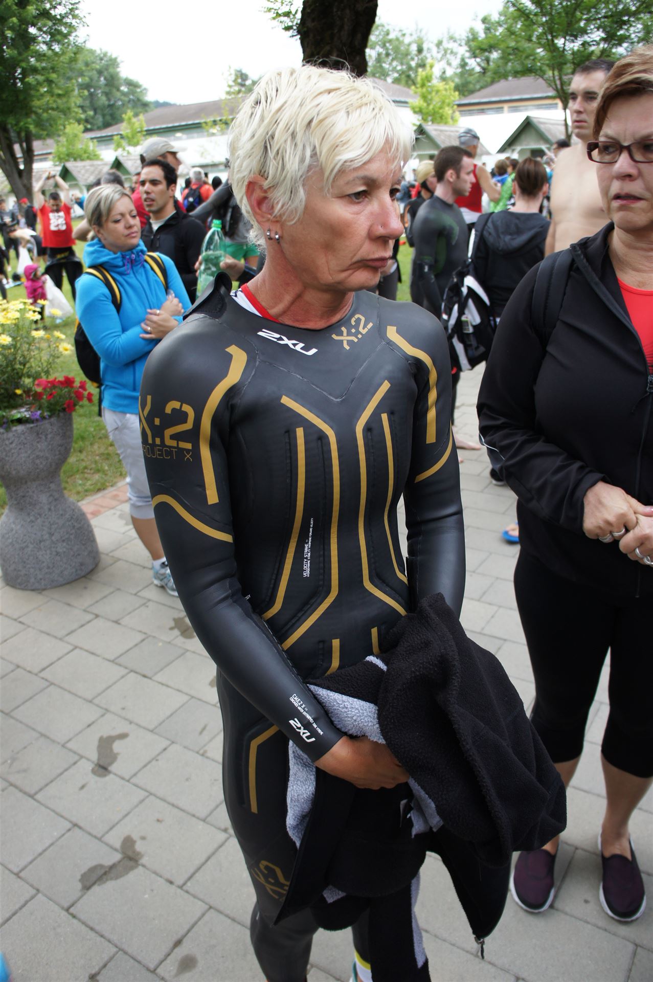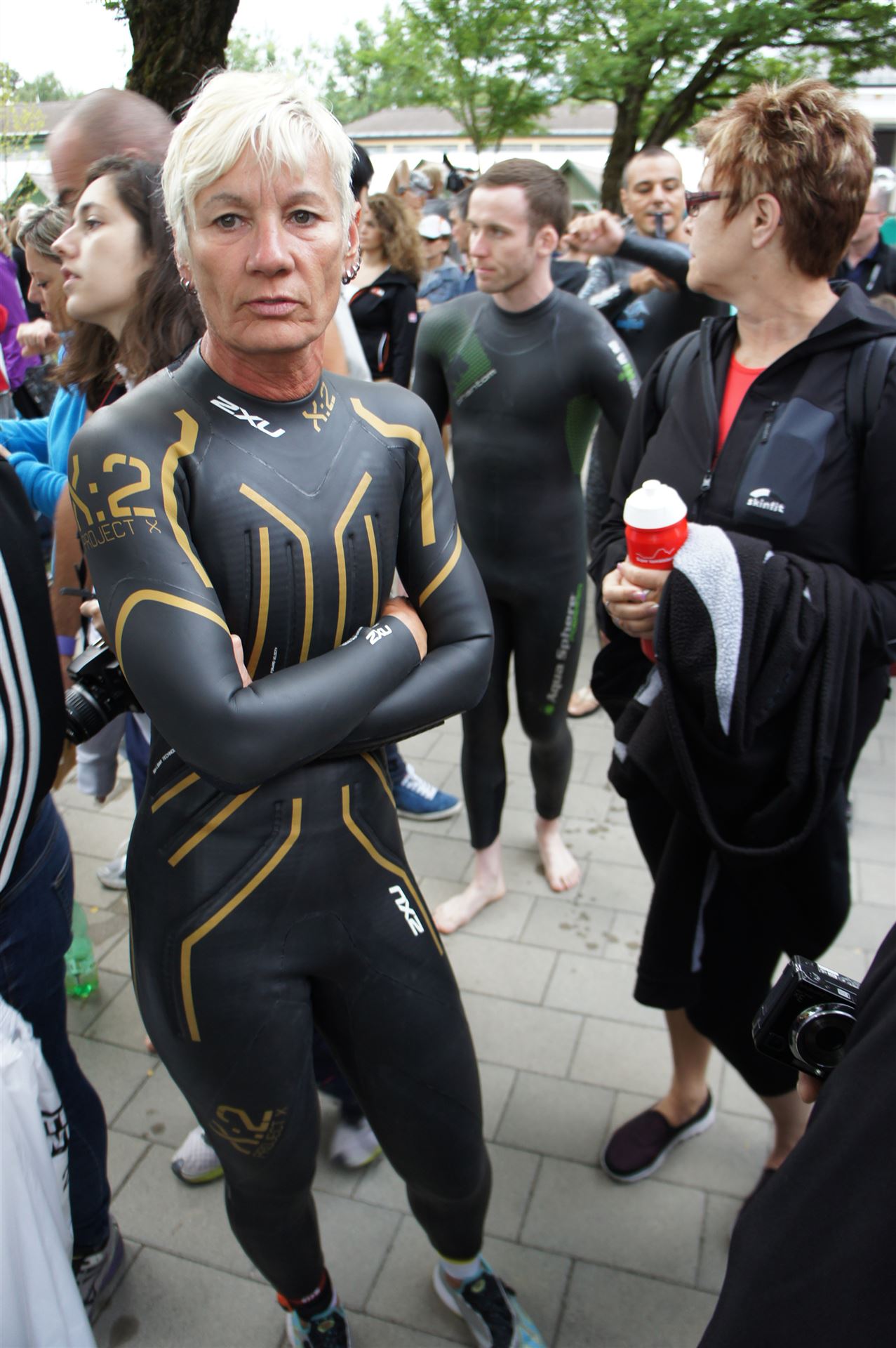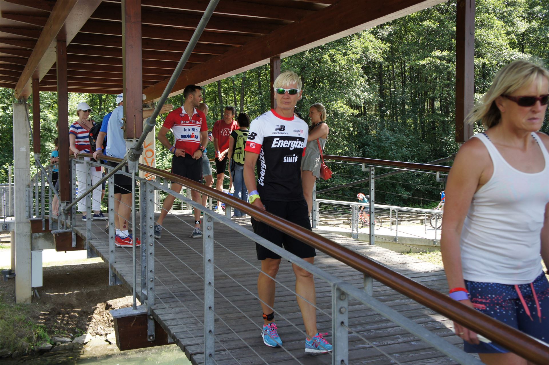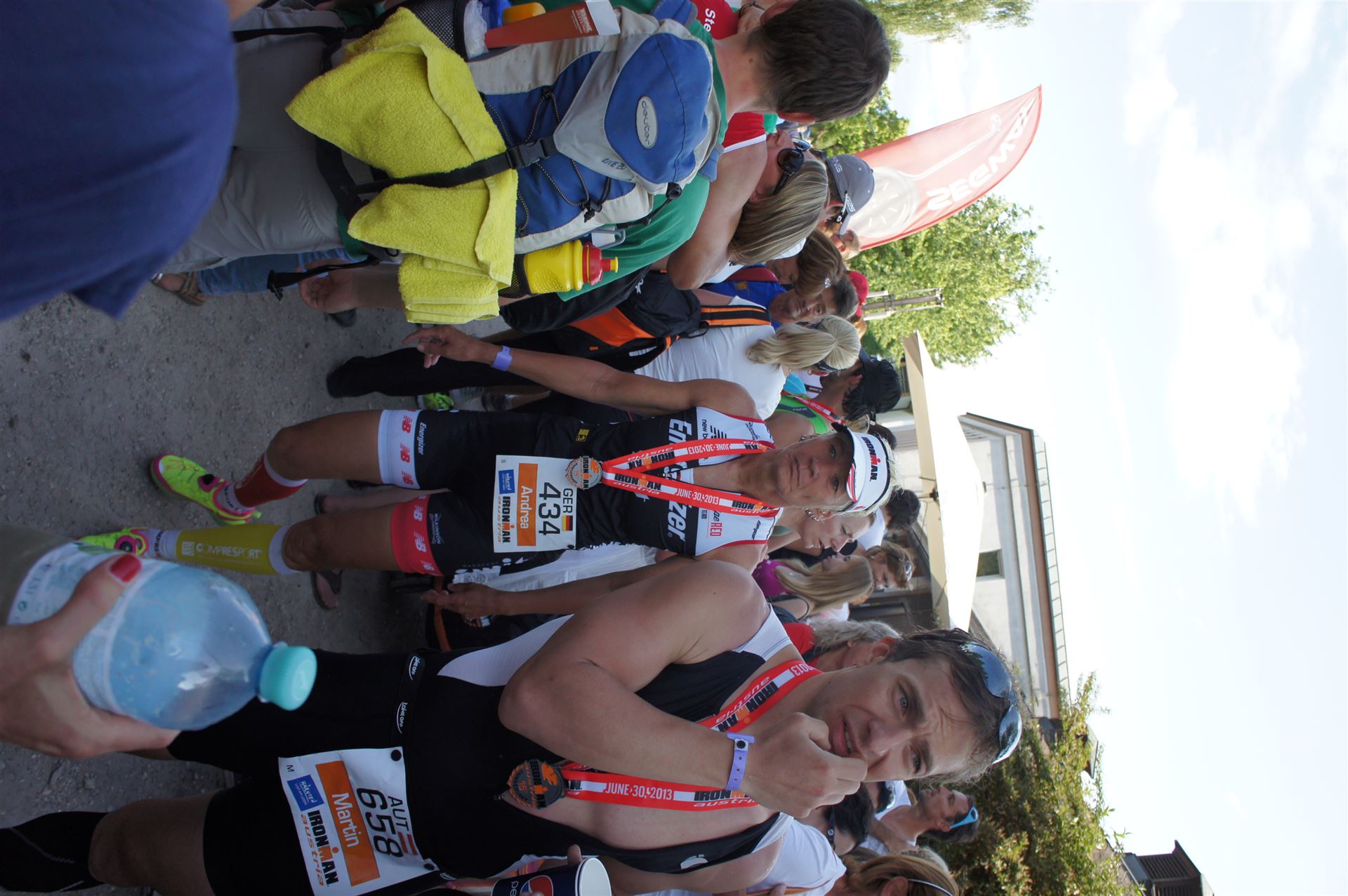 Wir gehen langsam zum Start in das Strandbad, es sind bereits viele Athleten und Zuschauer versammelt.