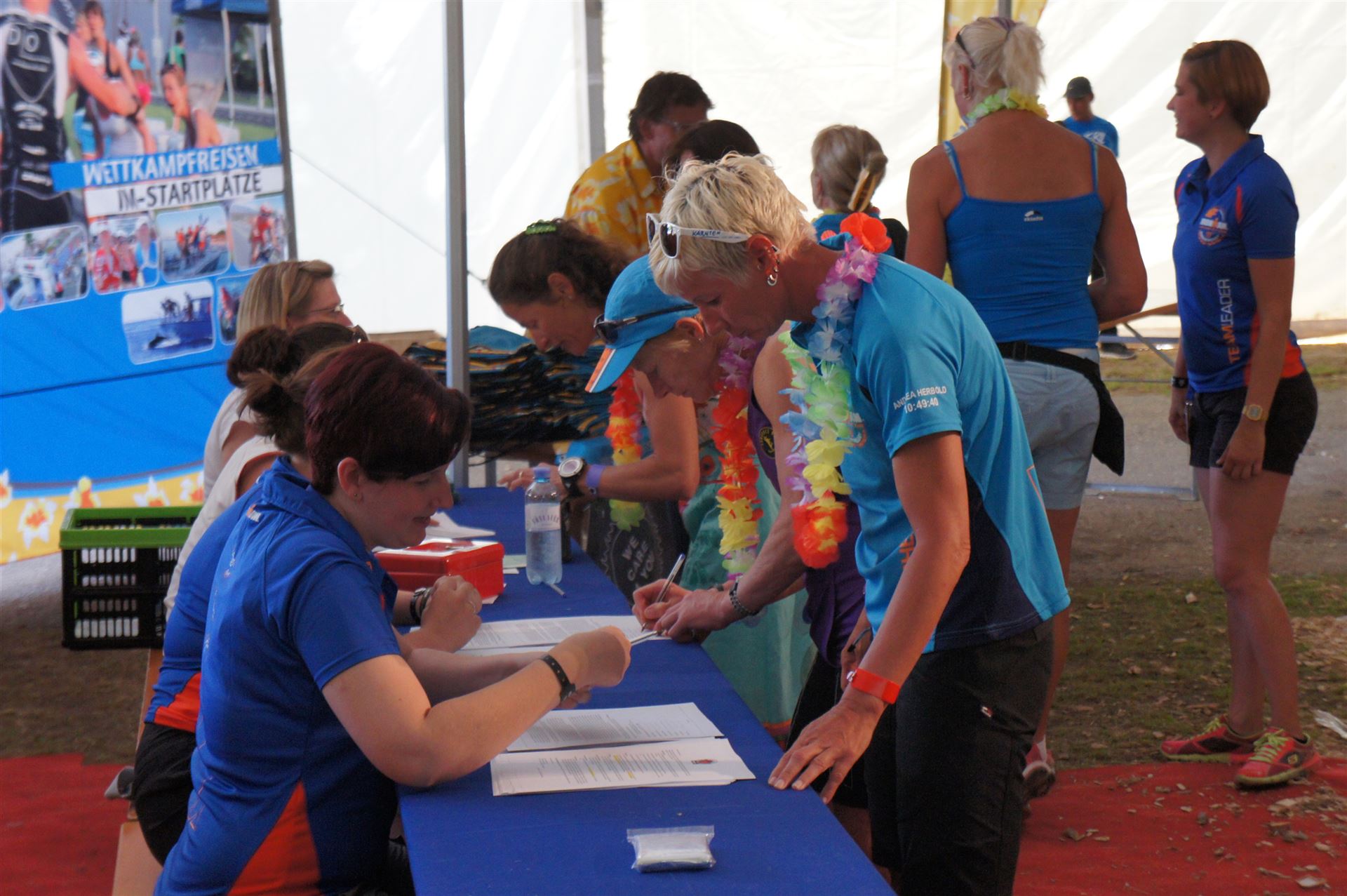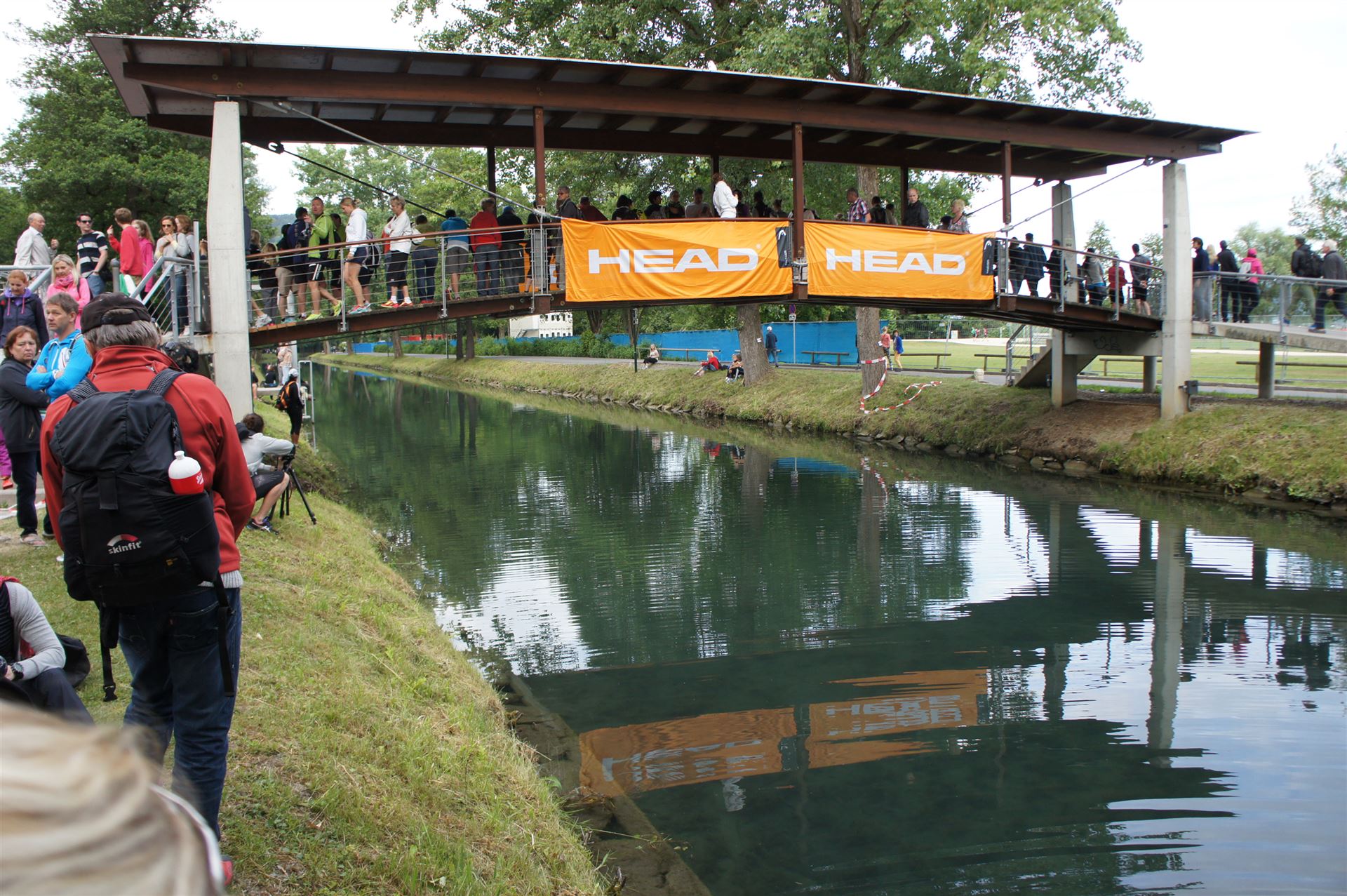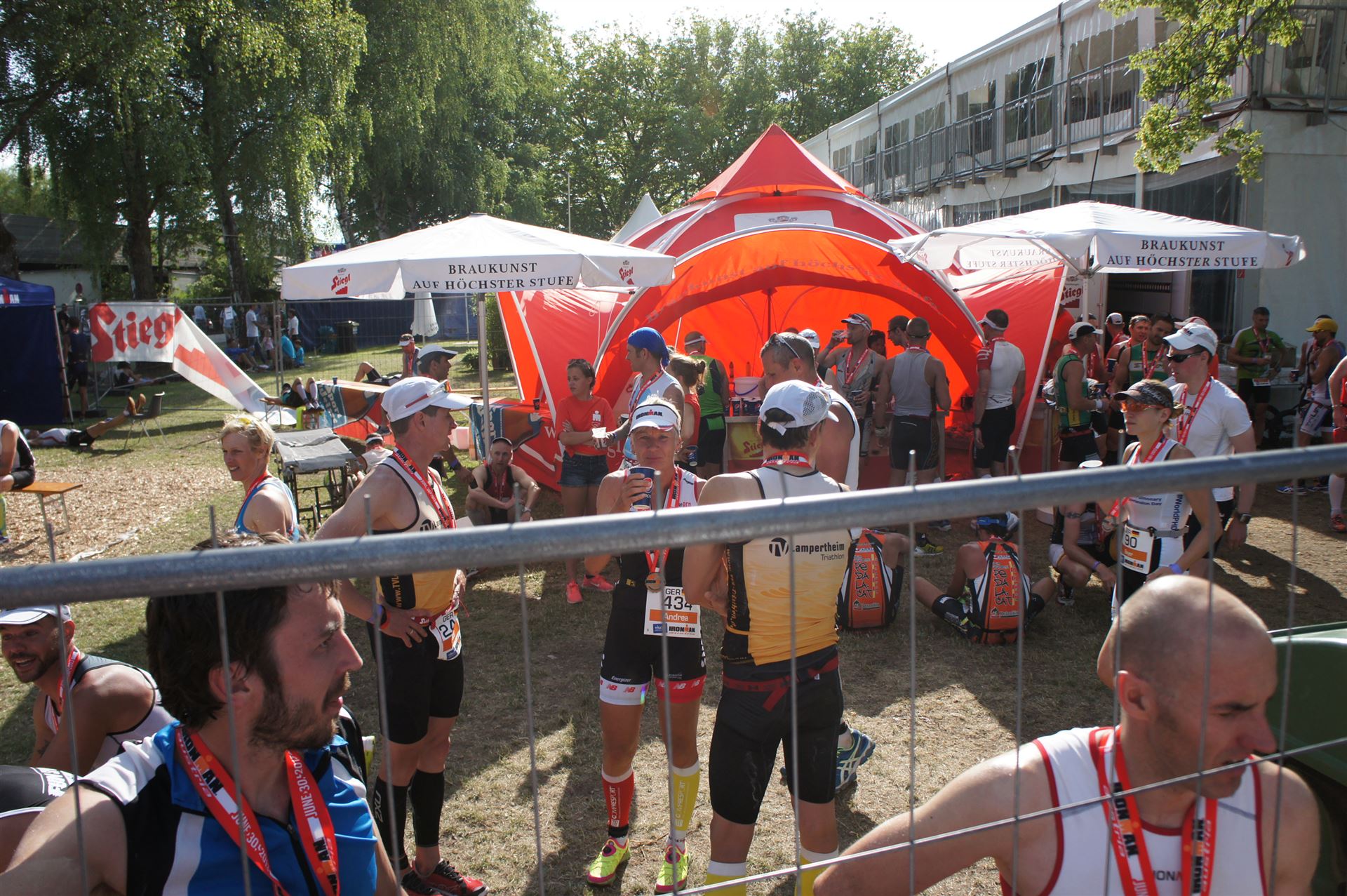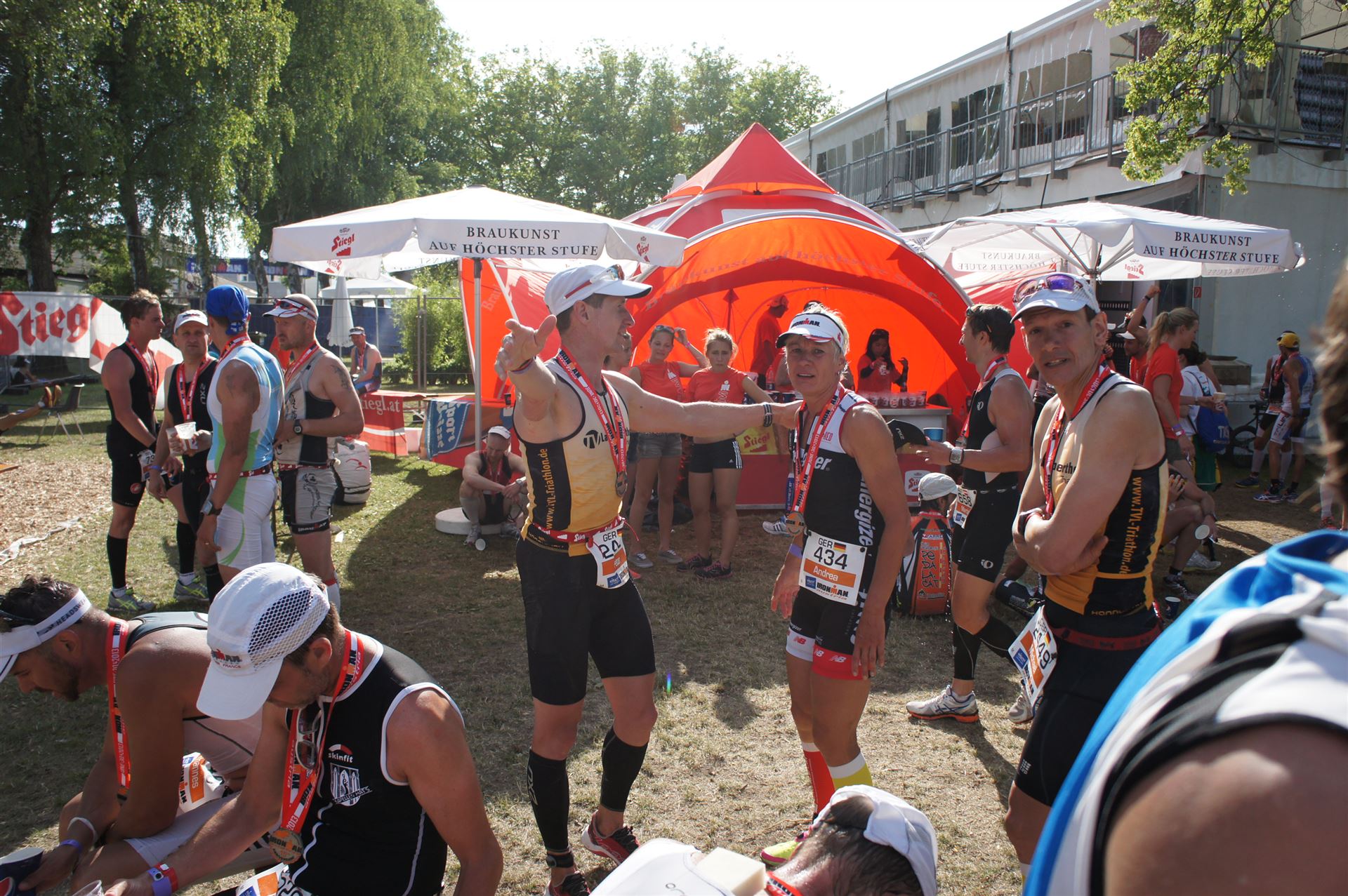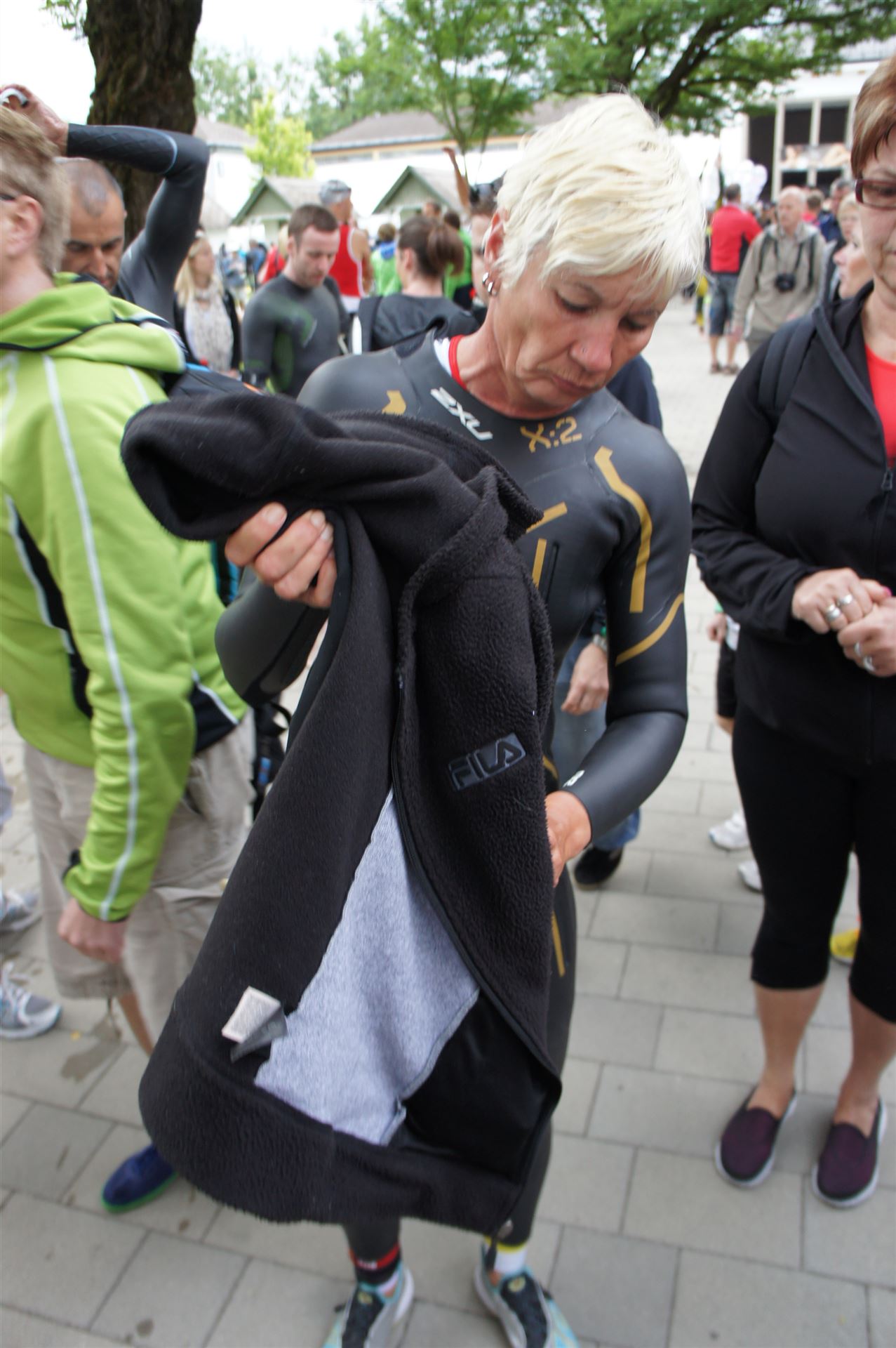 Wir gehen langsam zum Start in das Strandbad, es sind bereits viele Athleten und Zuschauer versammelt.