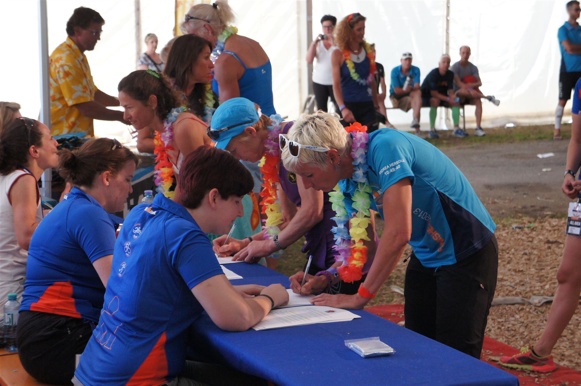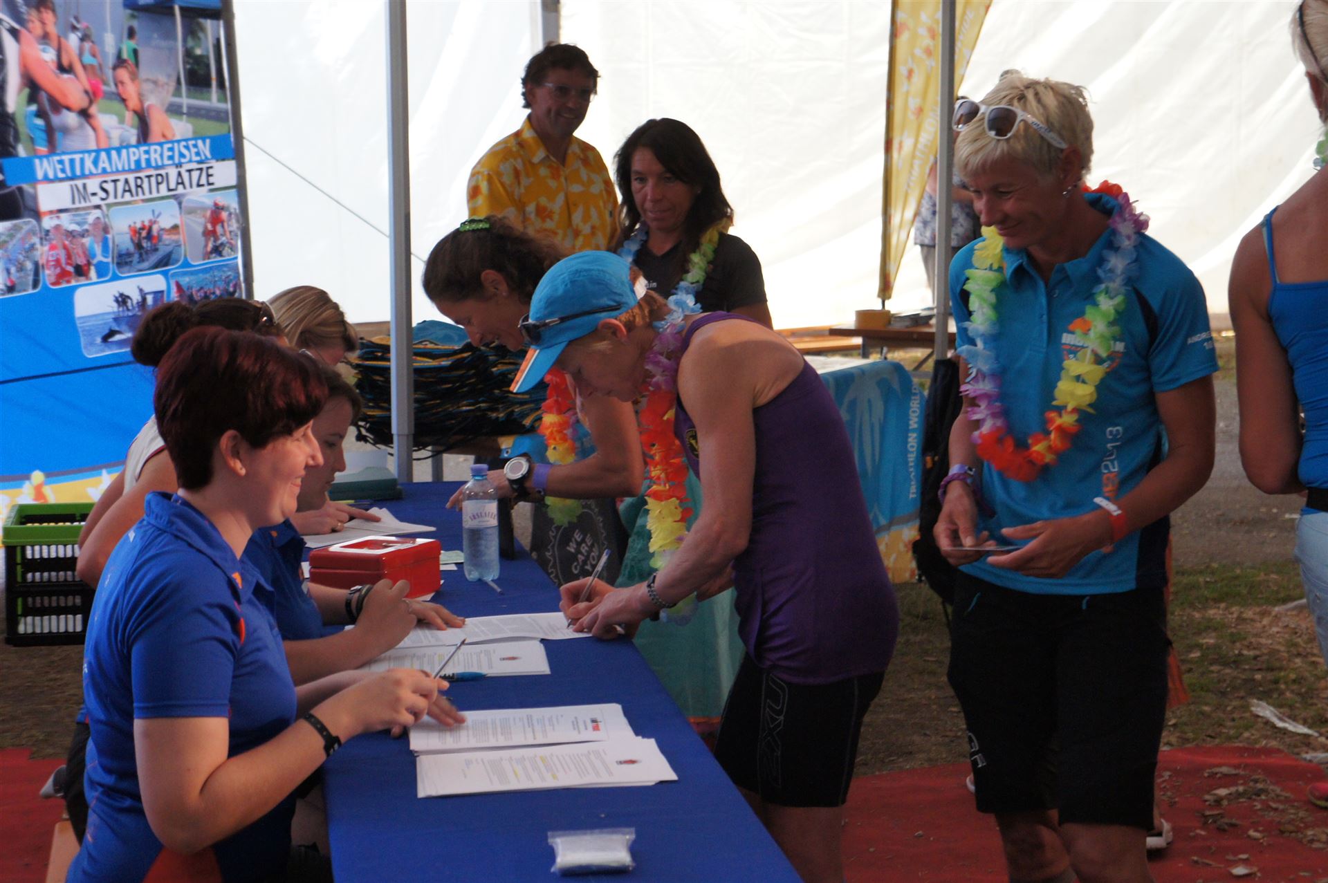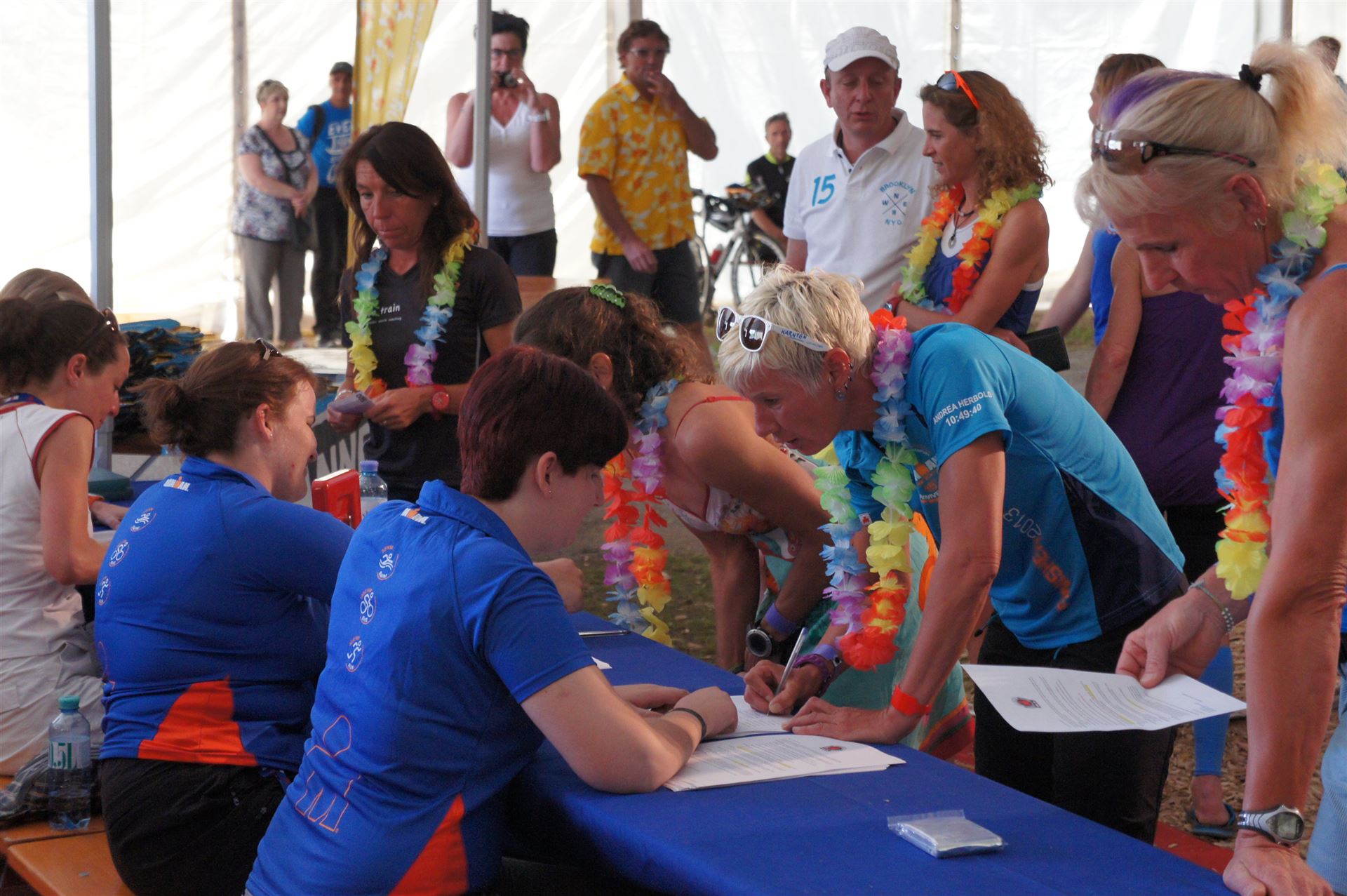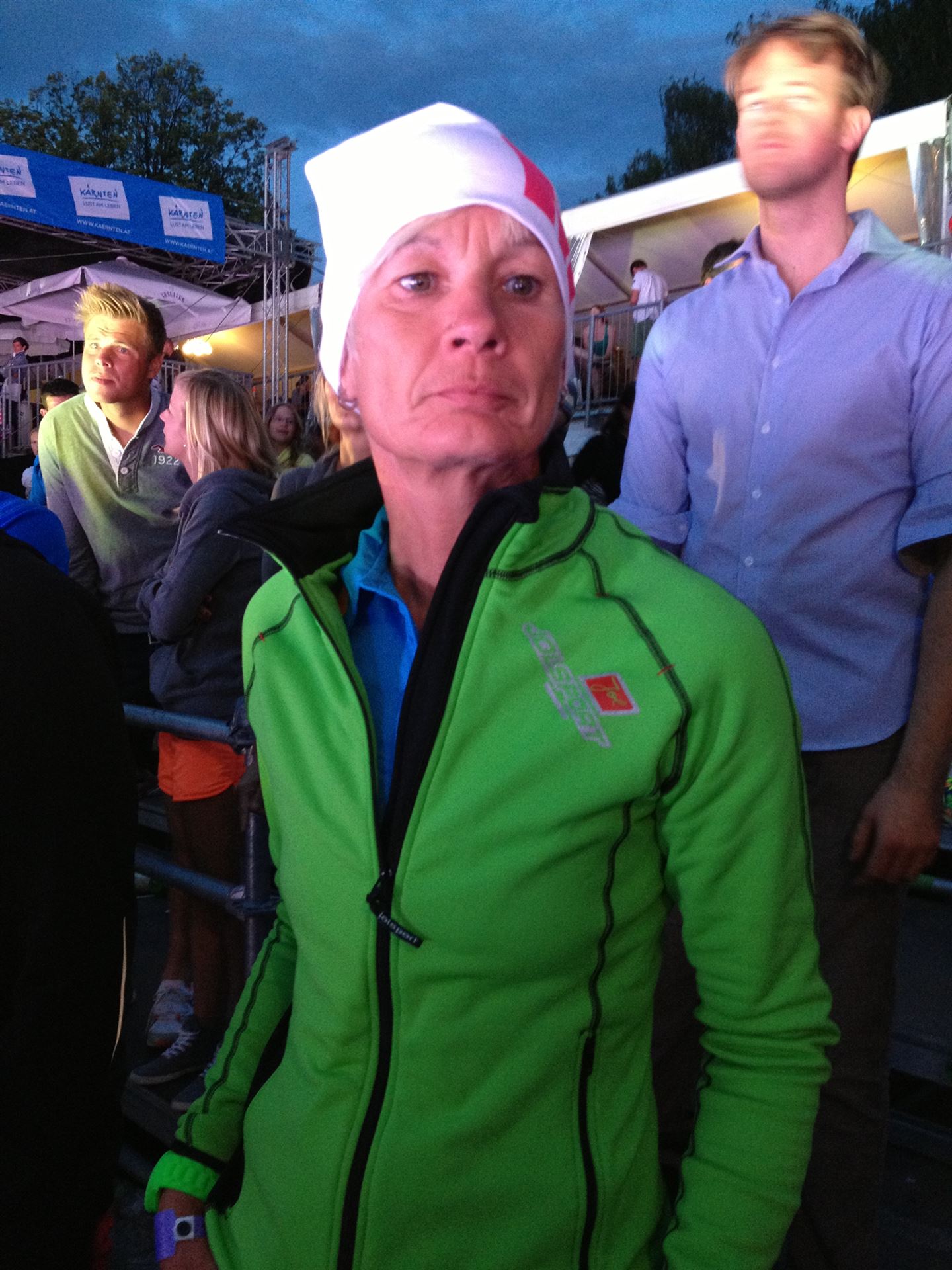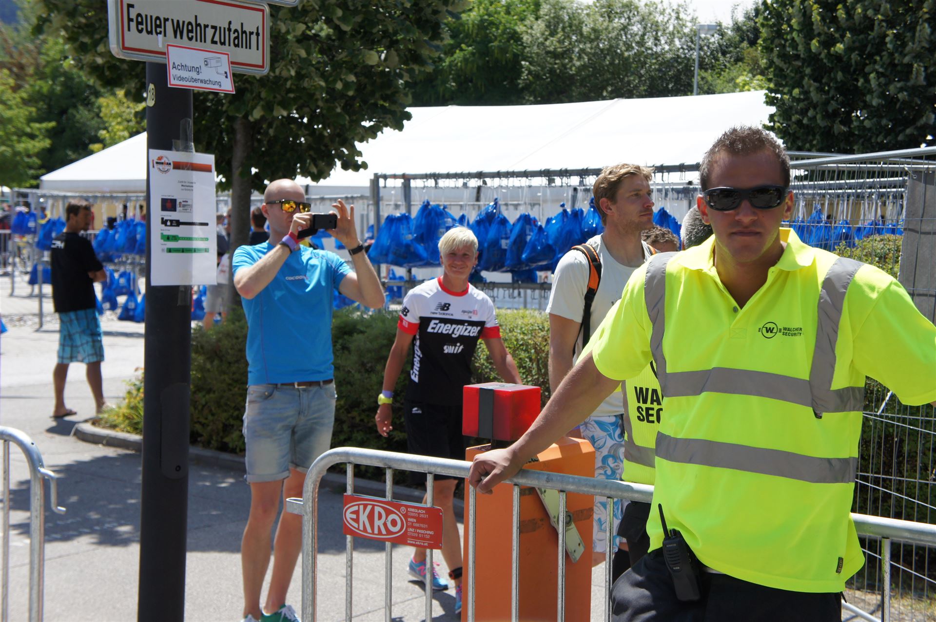 Wir gehen langsam zum Start in das Strandbad, es sind bereits viele Athleten und Zuschauer versammelt.