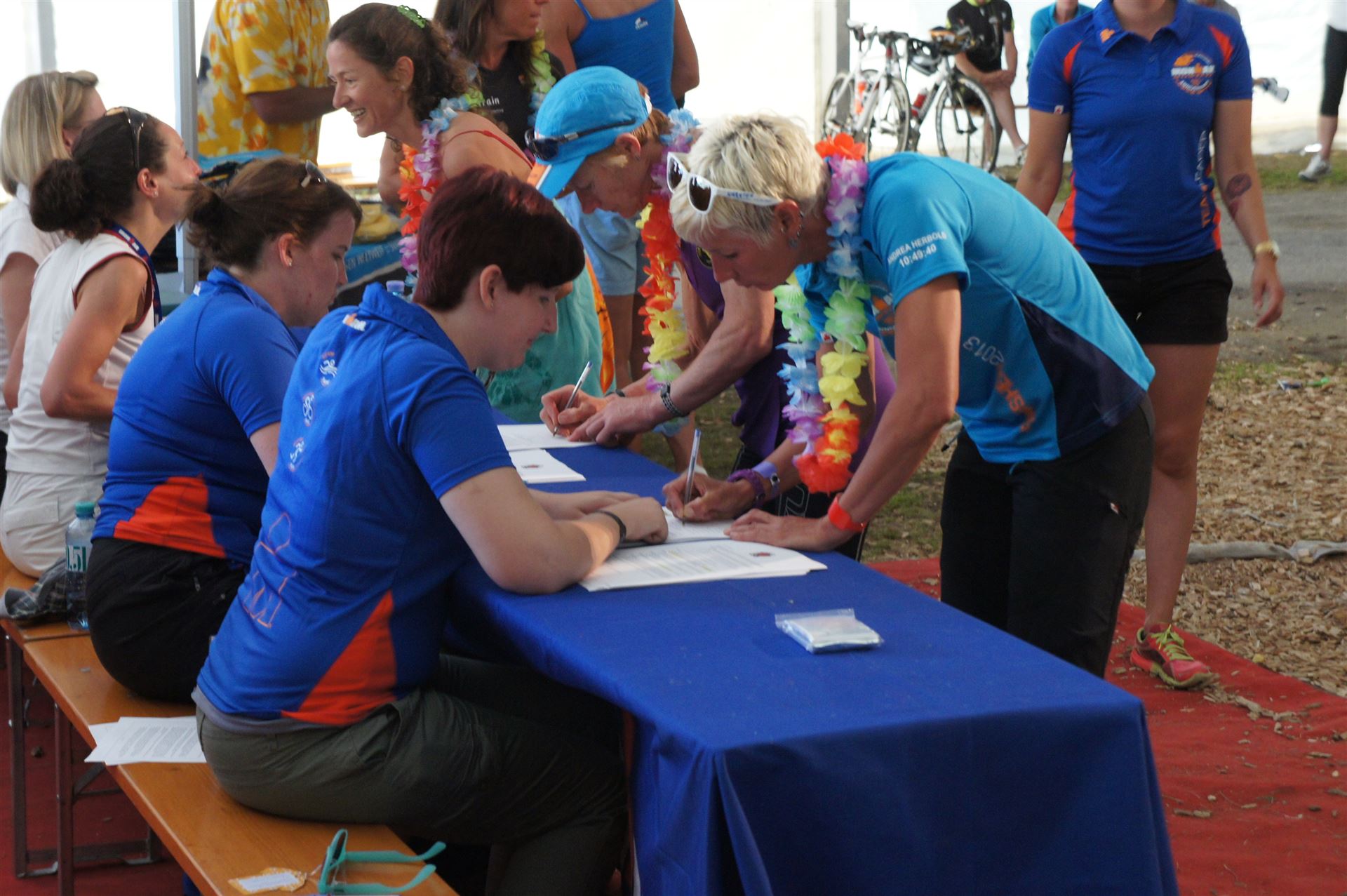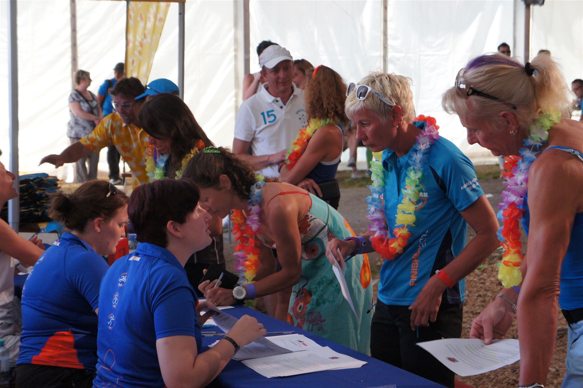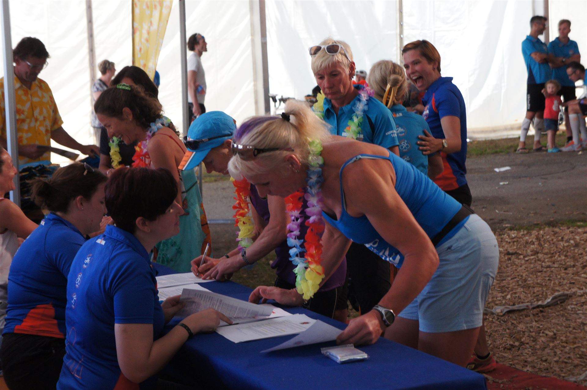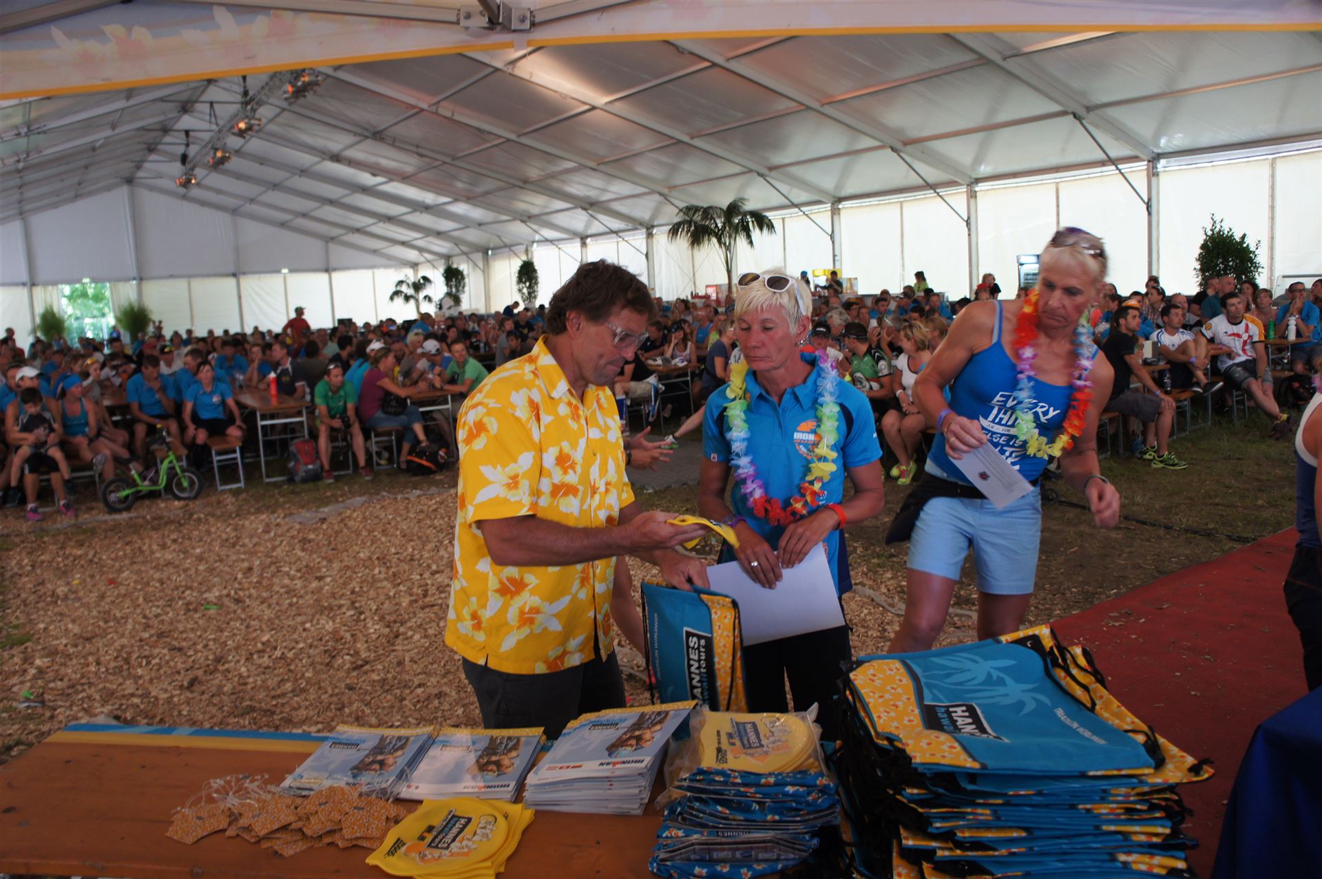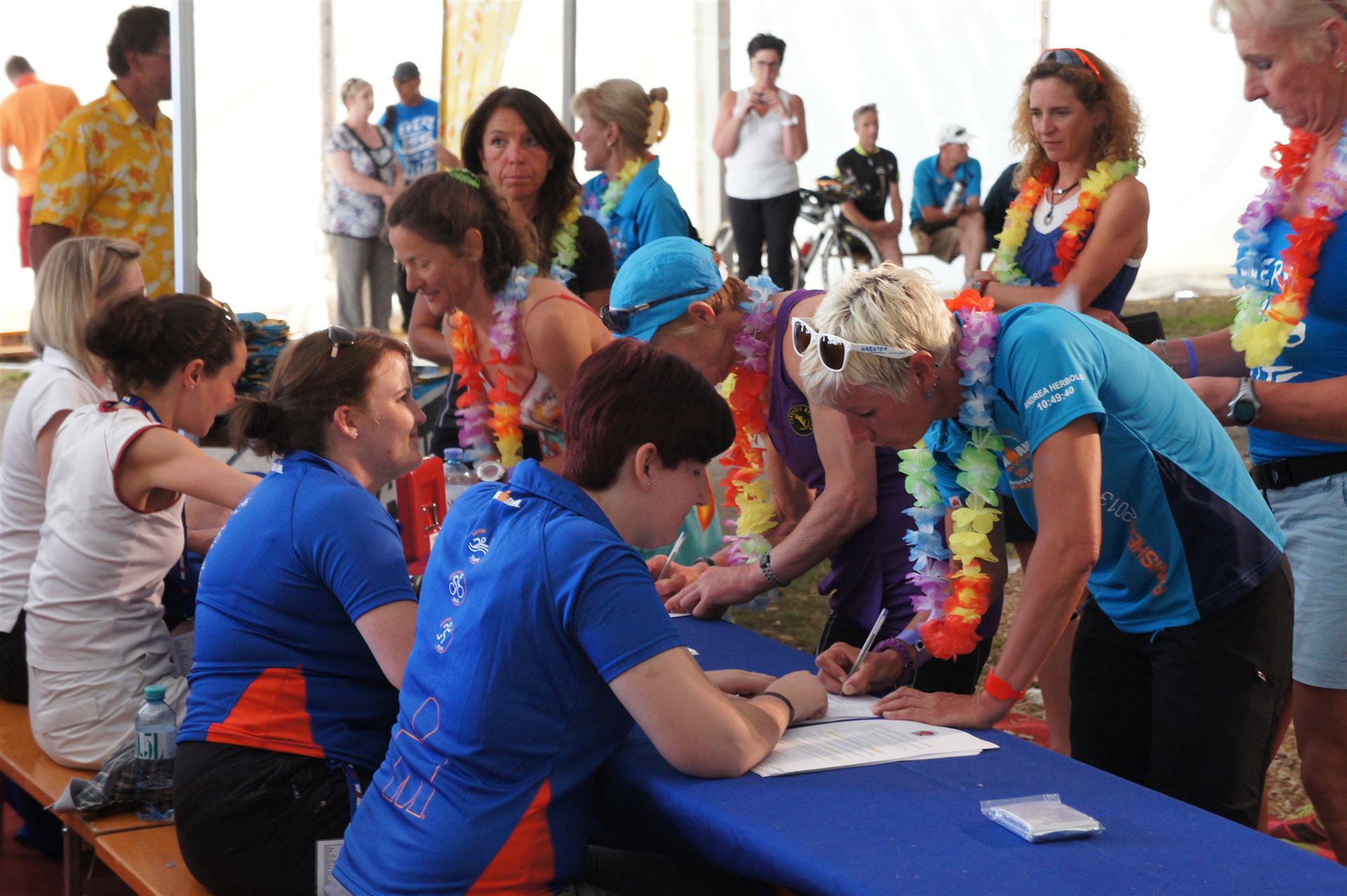 Wir gehen langsam zum Start in das Strandbad, es sind bereits viele Athleten und Zuschauer versammelt.