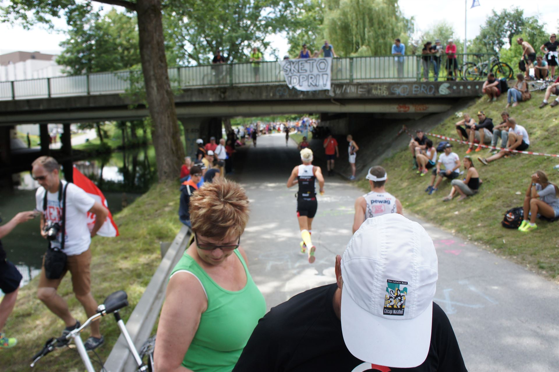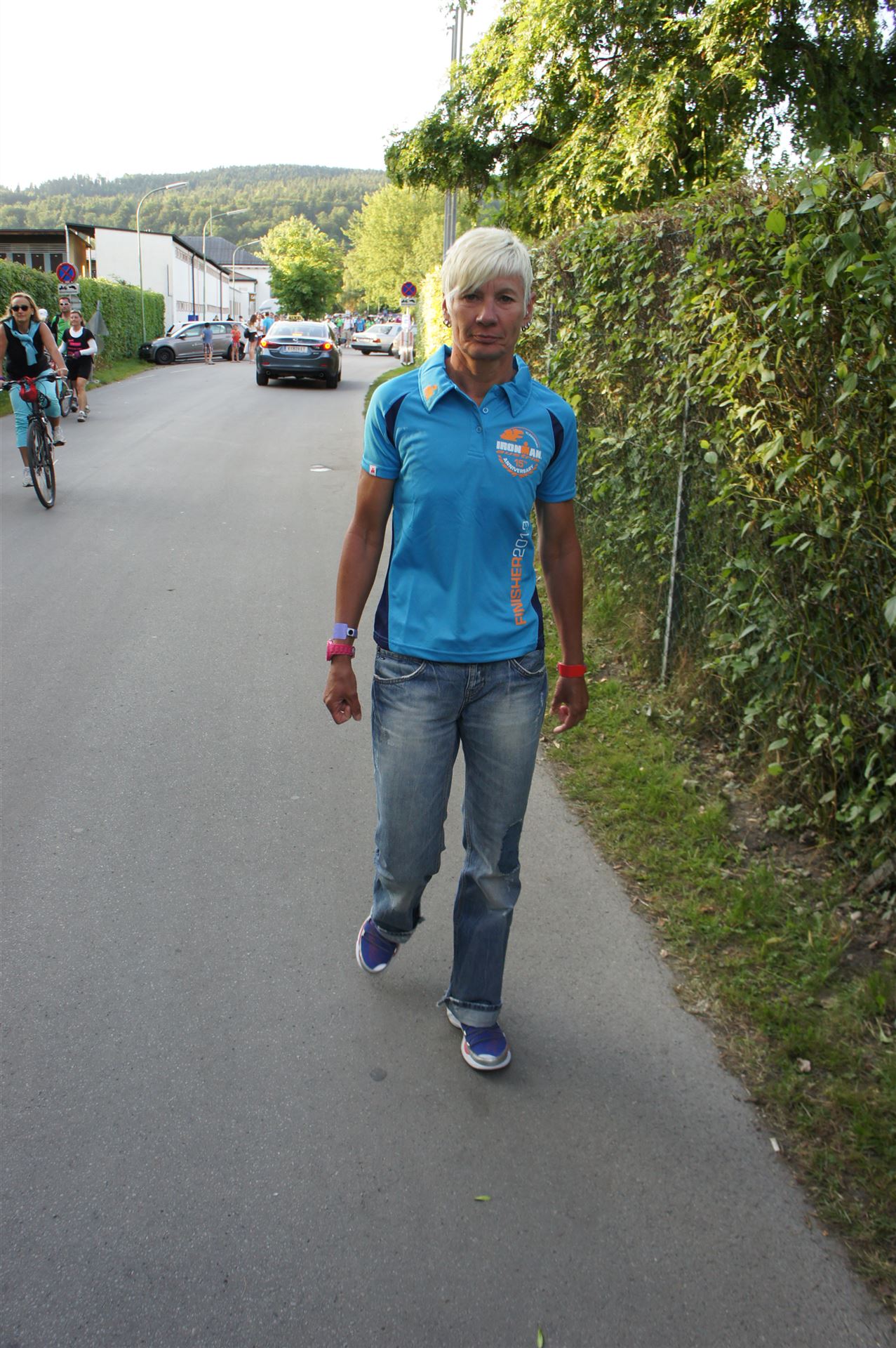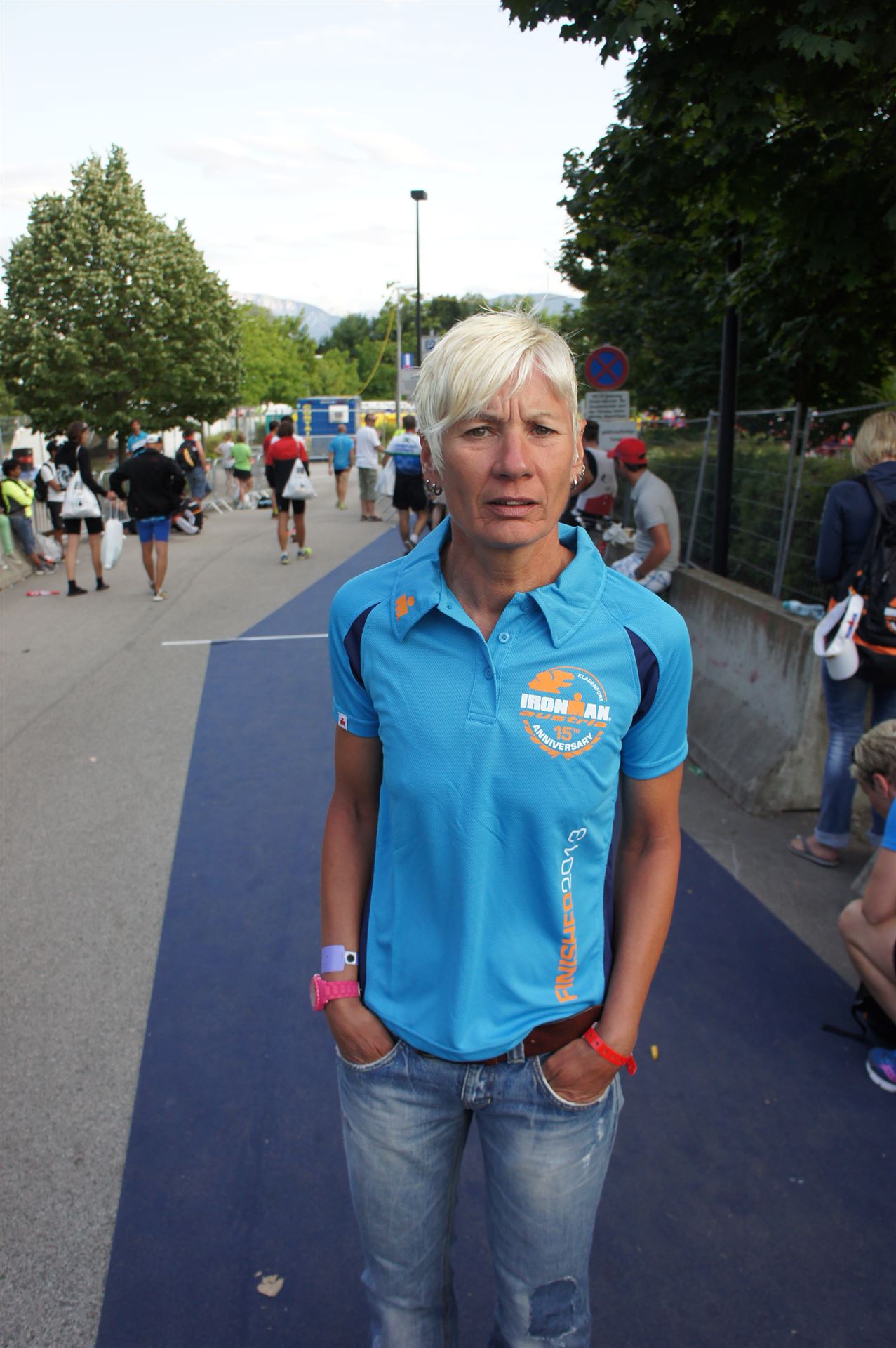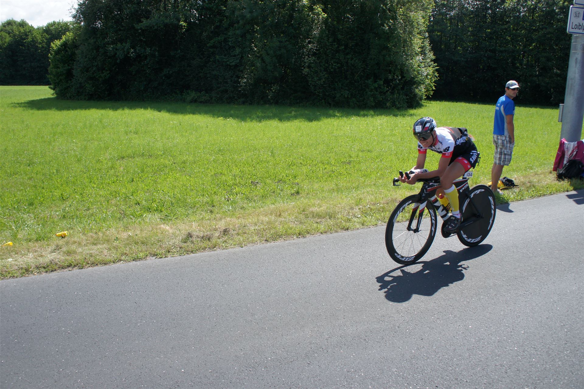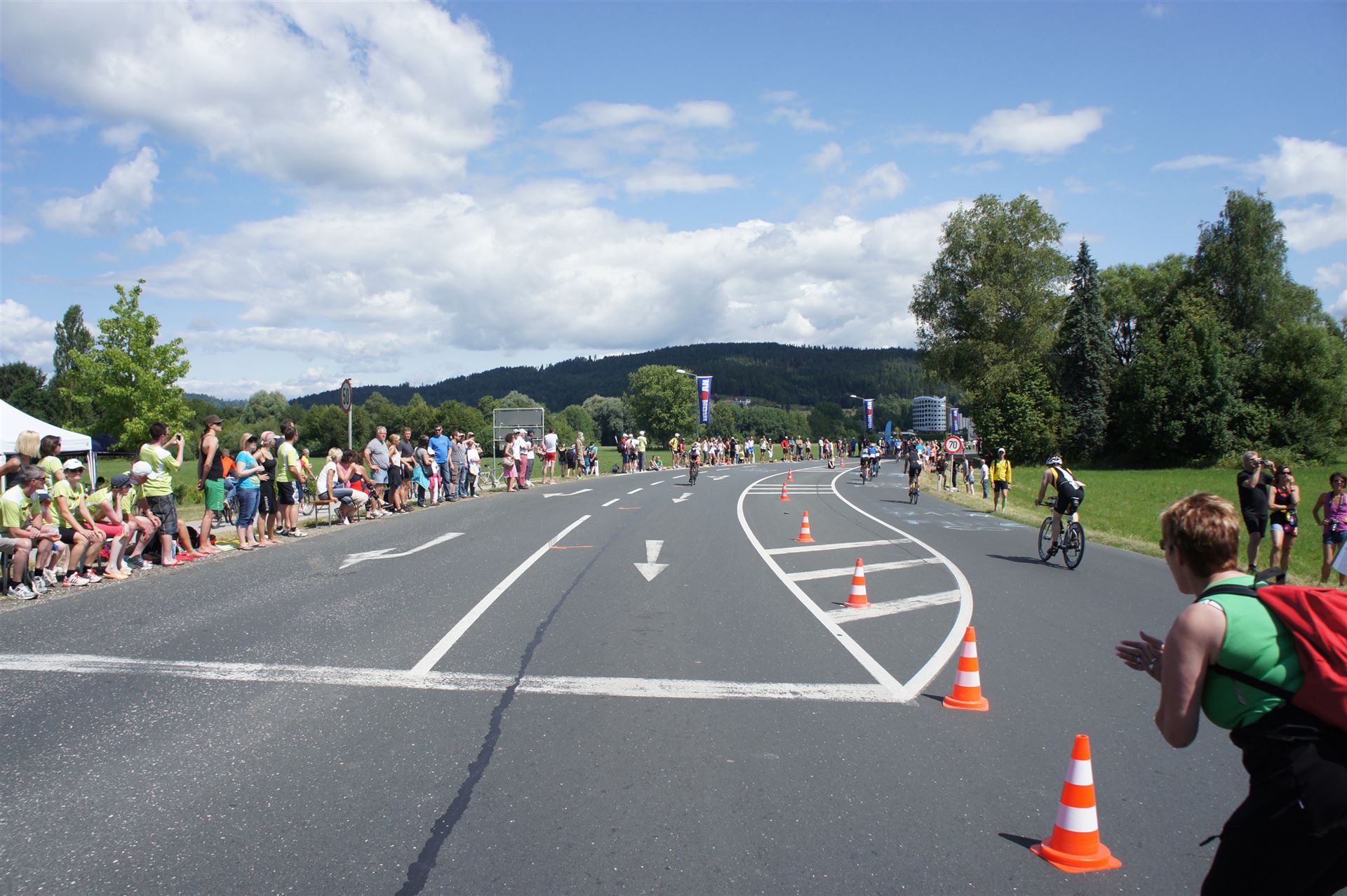 Auch hier gibt es viele Fans an der Strecke. Der DJ feuert mich mit der Bemerkung "Ironlady" an, ich kurble den Berg hoch.