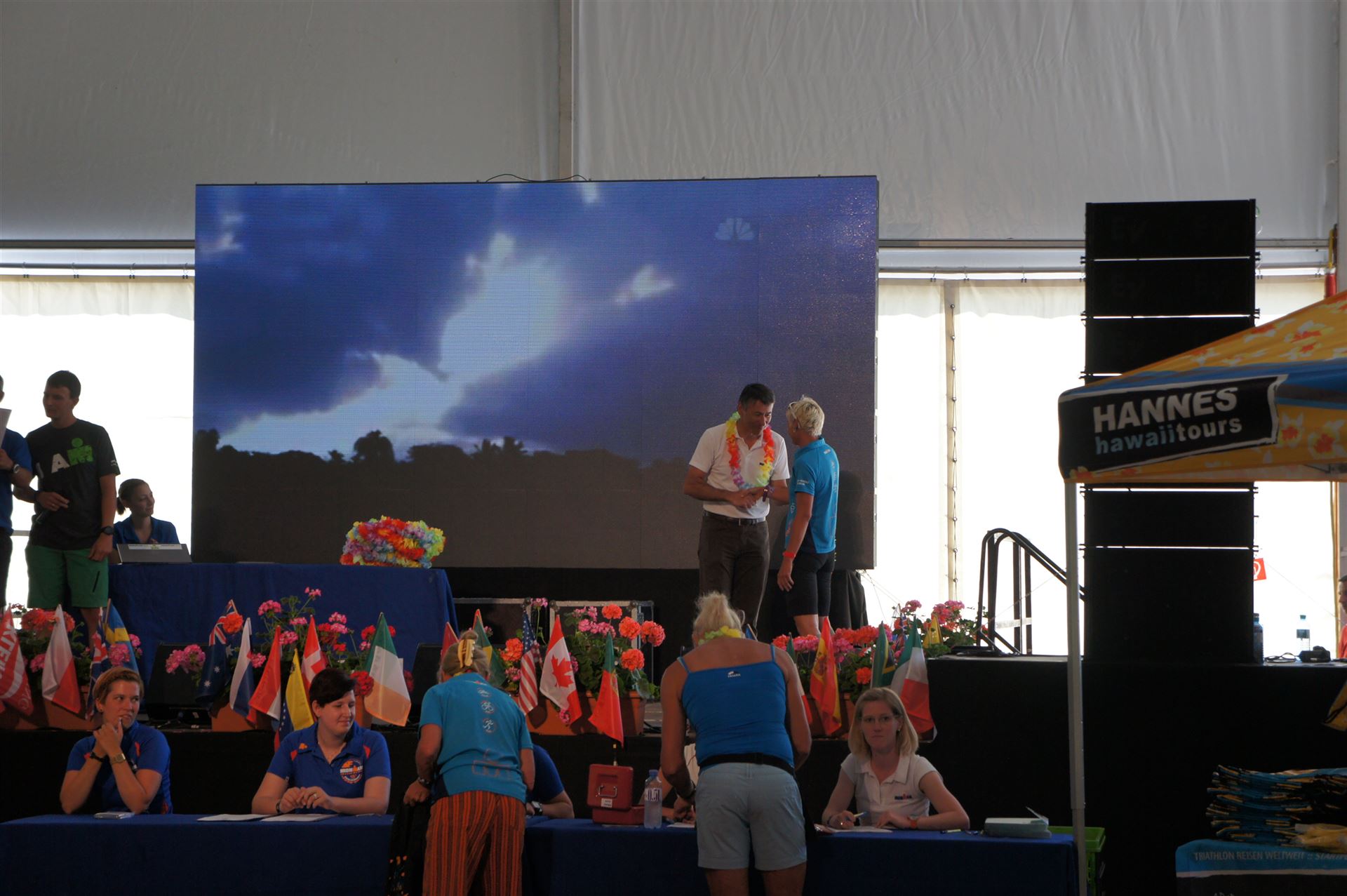 Ich bin geduscht, etwas essen kann ich an diesem Tag nichts mehr. Mein Rad sowie meine übrige Kleidung habe ich bereits aus der Wechselzone geholt. Es geht wieder zurück an die Finisherline. Die Stimmung ist gigantisch. Jeder einzelne Athlet wird von den Moderatoren und vom Publikum begrüßt. Der Zieleinlauf ist bis 00:00 Uhr geöffnet, danach gibt es noch ein Feuerwerk.