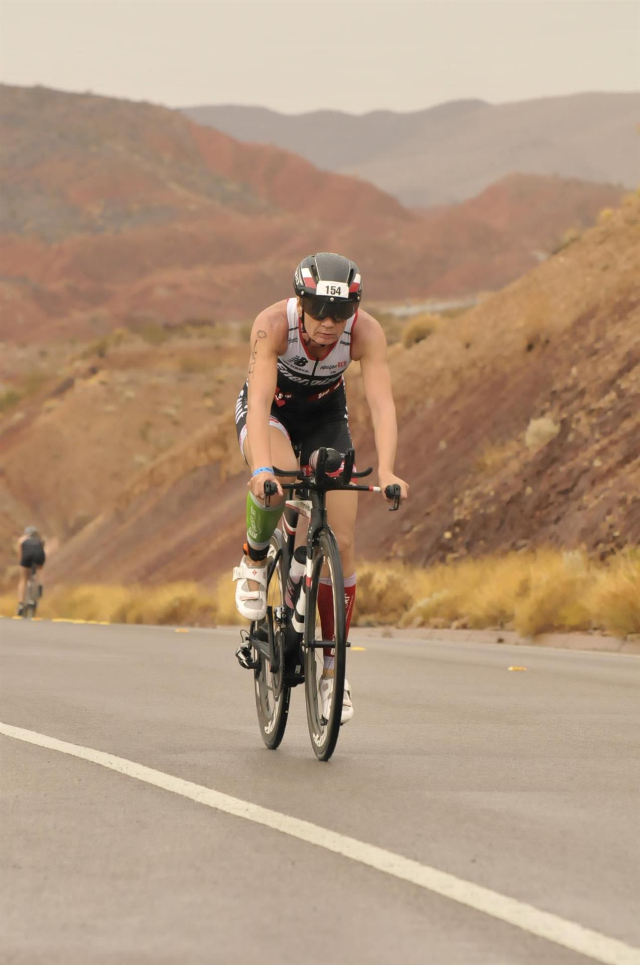 Heute Morgen gab es noch einmal eine kleine Radausfahrt. Da ich nicht mehr so viel machen wollte bin ich alleine gefahren. Um 6:30 Uhr ging es los, 30 Minuten in Richtung Wüste und wieder zurück. Erstaunlich wieviele Leute bereits um diese Zeit unterwegs sind. Die Temperaturen sind noch sehr angenehm. Nach der Radausfahrt gibt es wieder ein gemütliches Frühstück und um 10:00 Uhr fahren wir mit dem Bus zum Henderson Park. Hier ist die zweite Wechselzone eingerichtet und der Zieleinlauf ist ebenfalls dort. Das Einchecken geht relativ flott, die Leute sind super freundlich. Nach dem Einchecken machen wir noch einen Rundgang über die Messe. Es sind alle bekannten Marken vertreten, jeder zeigt seine neusten Waren.