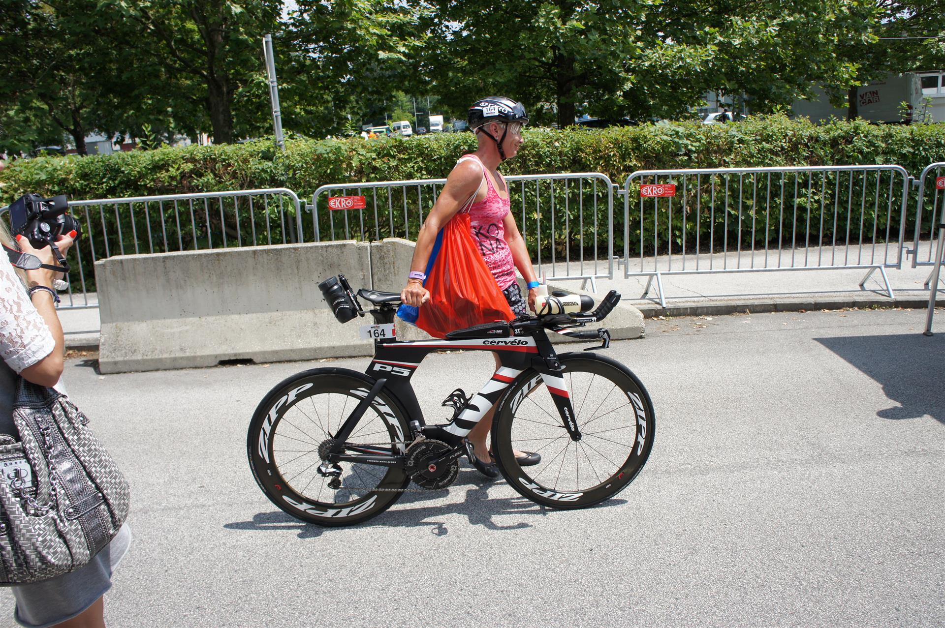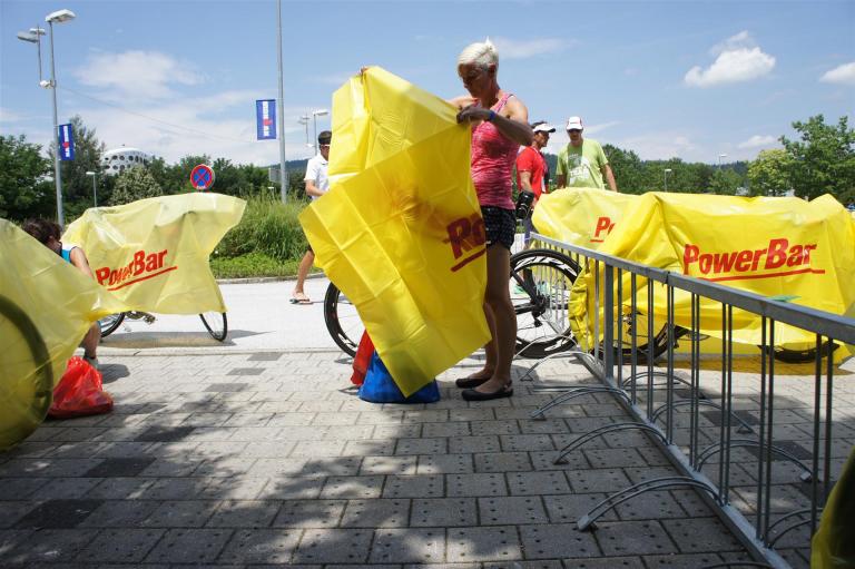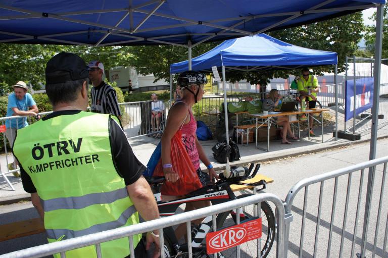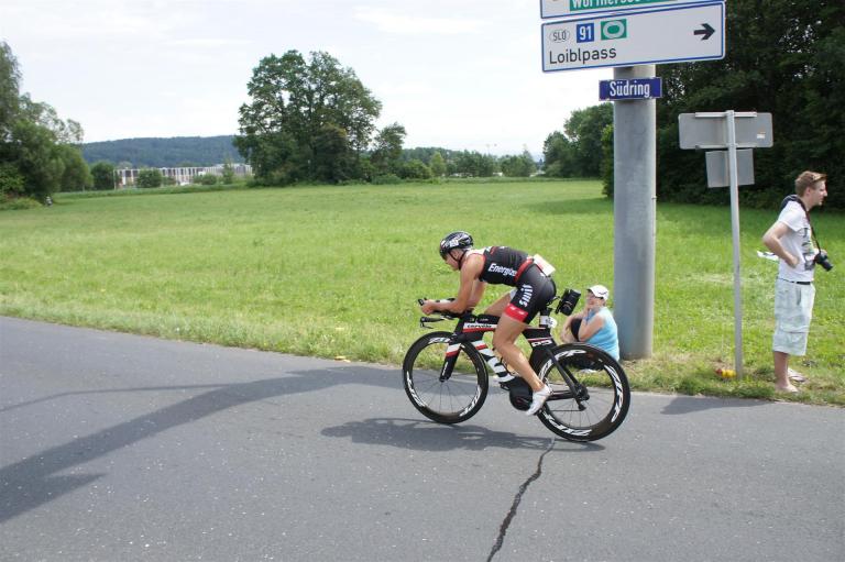In der Wechselzone schnell die Radutensilien anziehen und ab aufs Rad. Es geht erst einmal Richtung Station bevor man dann am Wörthersee entlang fährt. Die ersten Kilometer ist die Radstrecke noch relativ voll. Das Feld muss sich langsam auseinander ziehen.