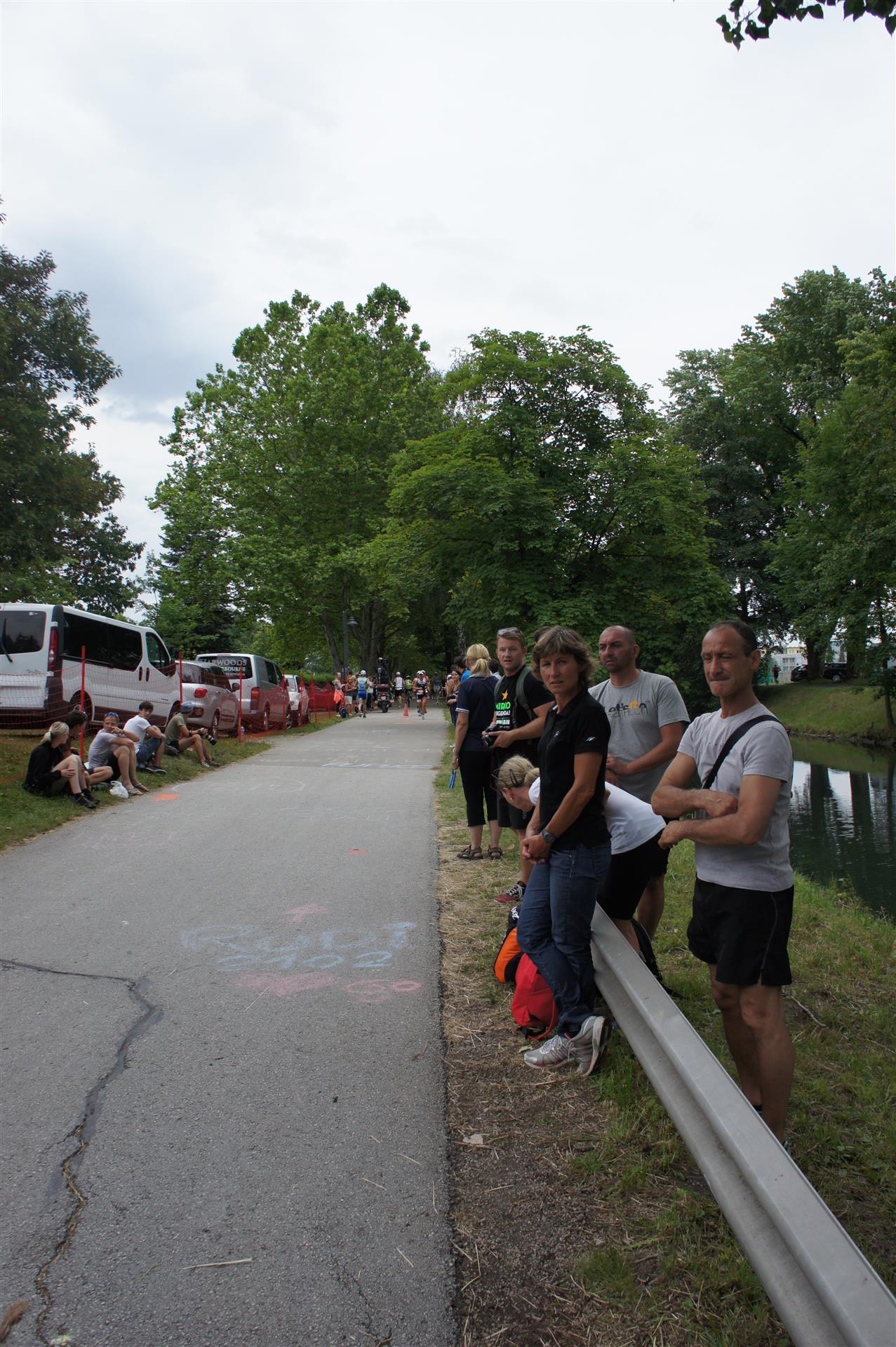 Am Faaker See gibt es dann den ersten richtigen Anstieg. Rechts und links entlang der Strecke haben sich viele Zuschauer versammelt. Allein durch das Anfeuern bewältigt man den Anstieg ohne Probleme. Der Tacho zeigt mitunter eine zweistellige Steigung an. Danach geht es flach weiter, dieses Stück mag ich nicht so gerne, da man oft Gegenwind hat. Aber egal, den Wind haben alle Athleten.