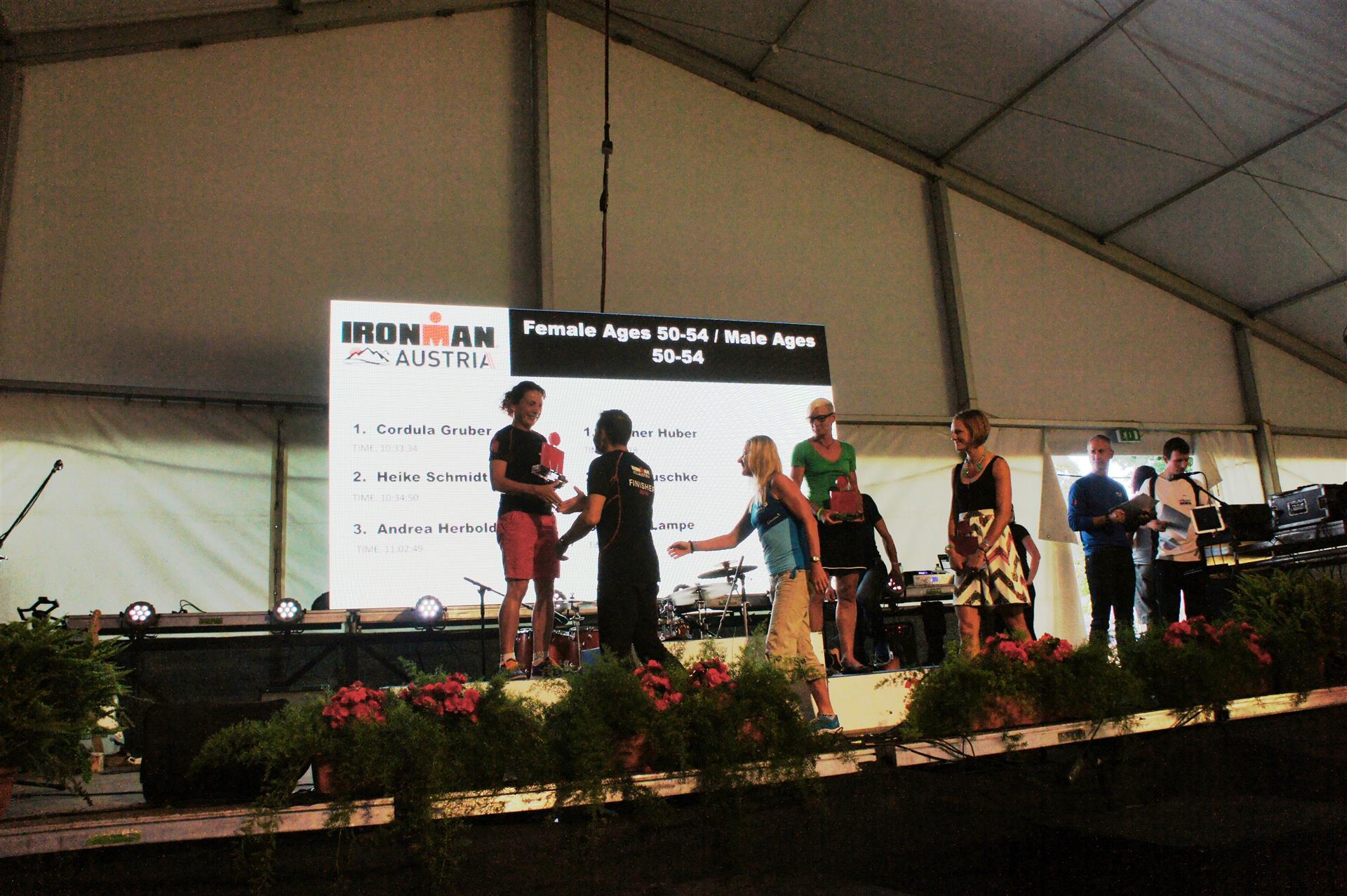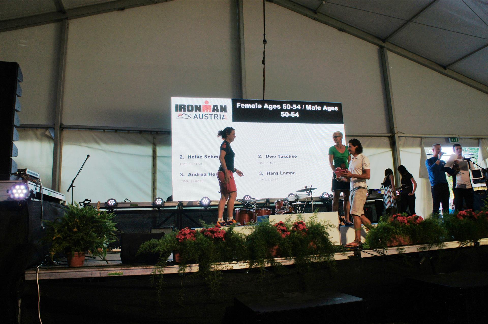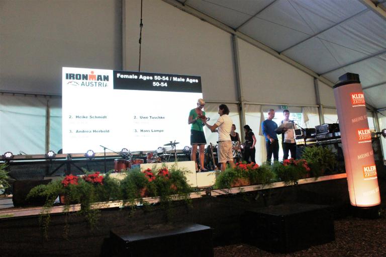 Die Leute sind jedoch sehr hilfsbereit und nett. Zwischen durch kann ich immer mal wieder Laufen bis der nächste Krampf kommt. Es sind ja nur noch 10 Kilometer bis zum Ziel. Ich überschlage zwischendurch die noch verbleibende Zeit und bin relativ entspannt, da ich noch ausreichend Zeit habe. Trotz dieser Strapazen erreiche ich nach 11 Stunden und 2 Minuten überglücklich die Finisherline (Lauf 3:52) und bin total erstaunt, als der Sprecher beim Zieleinlauf durchsagt, dass ich in meiner Altersklasse auf Platz 3 bin.