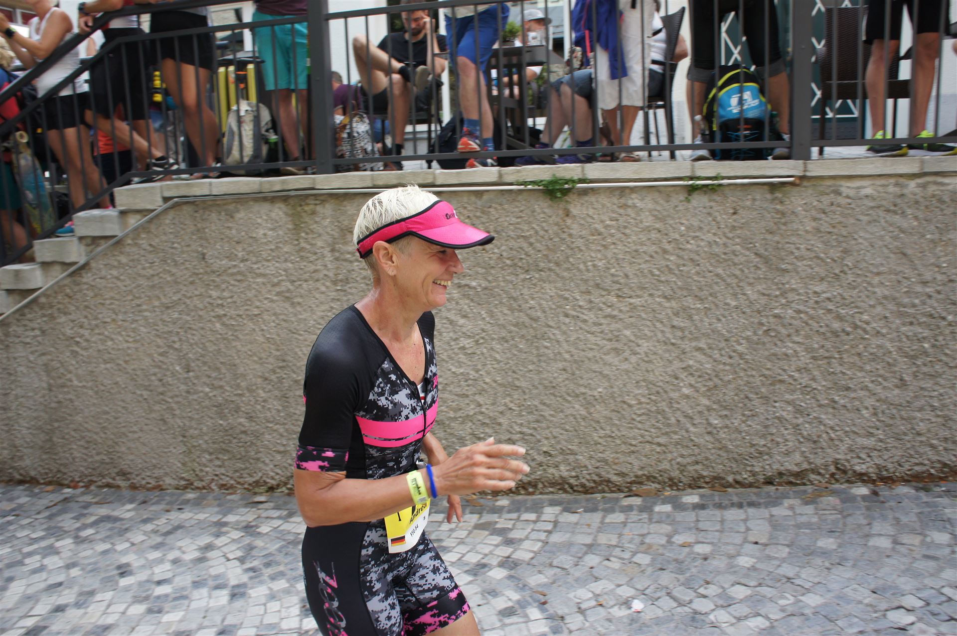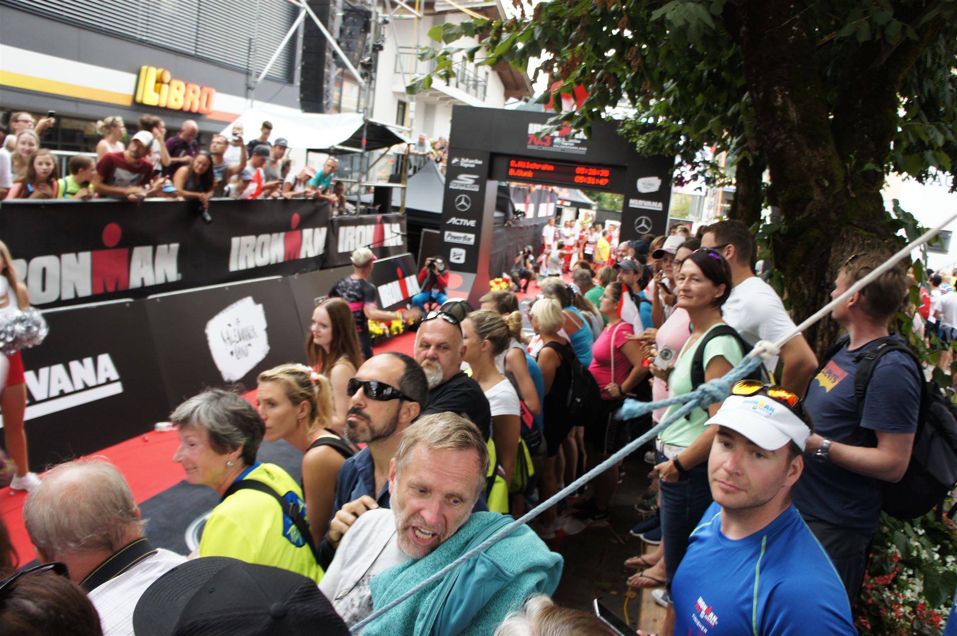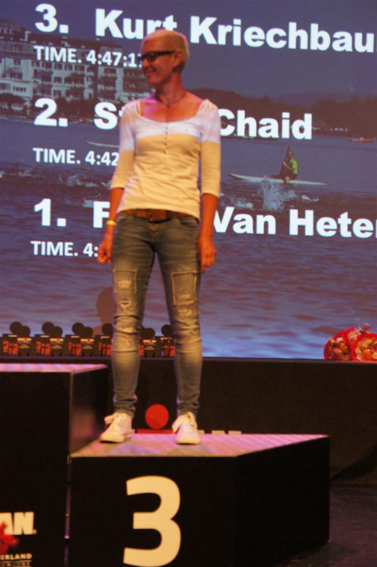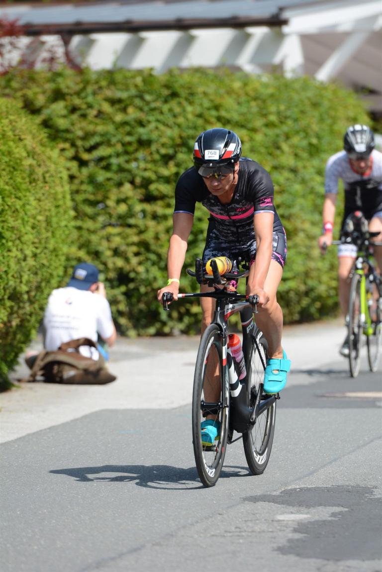 Die ersten 2-3 Kilometer fallen mir sehr schwer. Die Beine sind müde und ich kann mein Tempo nicht finden, was sehr ungewöhnlich für mich ist. Normalerweise habe ich keine Anlaufprobleme nach dem Rad. Meinem Rücken geht es sehr gut, daran kann es nicht liegen. Nachdem ich eine Runde durch die Stadt gelaufen bin und die Zuschauer mich angefeuert und motiviert haben geht es mir langsam besser. Mein Kopf ist positiv und die nächsten 18 Kilometer können kommen. Die Strecke führt am See entlang, ein tolles Panorama. Die Strecke ist teilweise Asphalt aber auch viel Schotter. Man gewöhnt sich irgendwann an den Schotter, die Zuschauer und die tolle Strecken helfen dabei. Gesamt werden 2 Runden mit einigen hoch-tief Passagen gelaufen. Das Ziel ist direkt in der Stadt. Die Finisherline ist voll, man wird angefeuert, es wird gejubelt, eine ganz tolle Stimmung. Für den Halbmarathon habe ich eine Zeit von 1:53:04 benötigt.