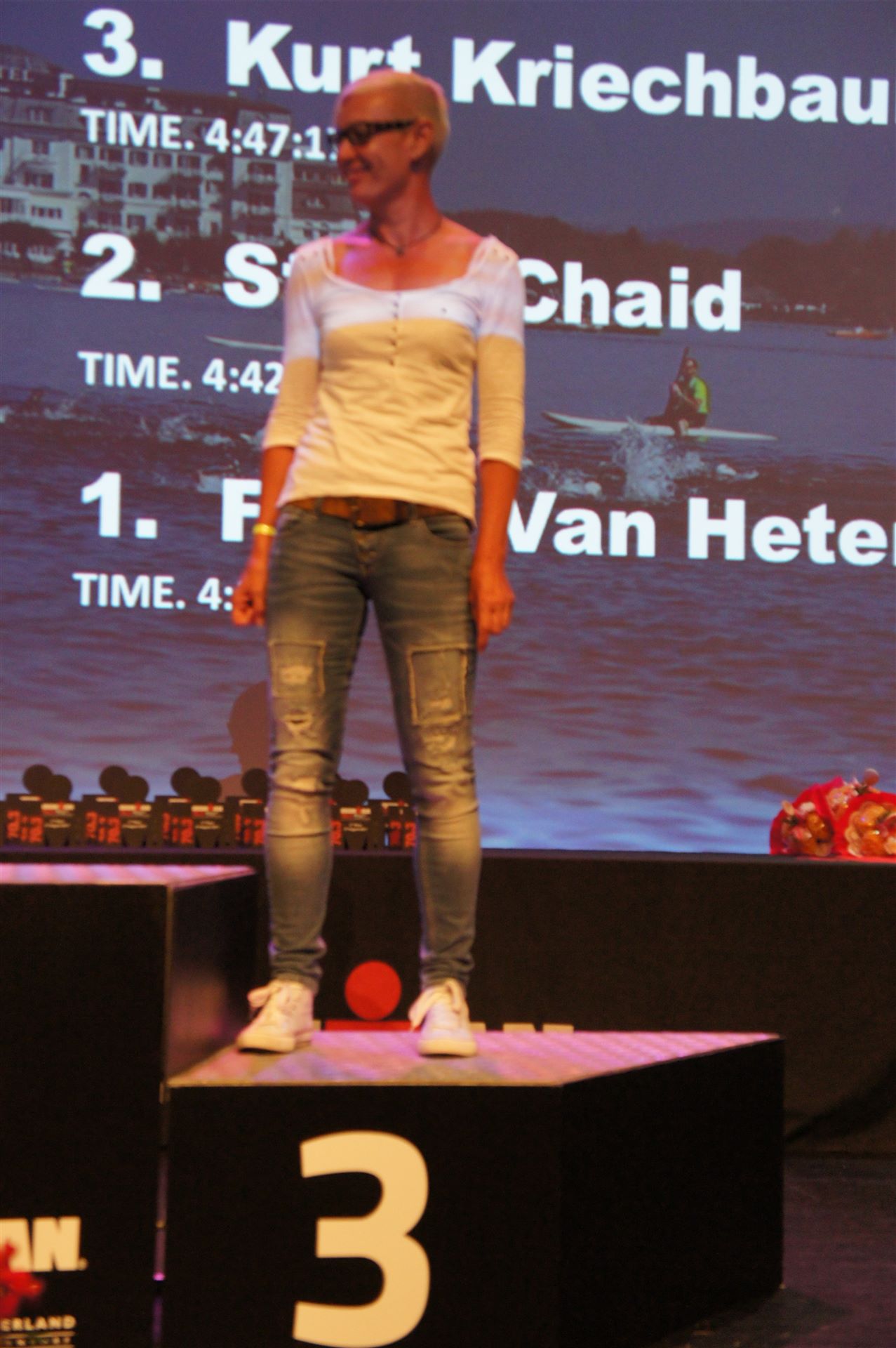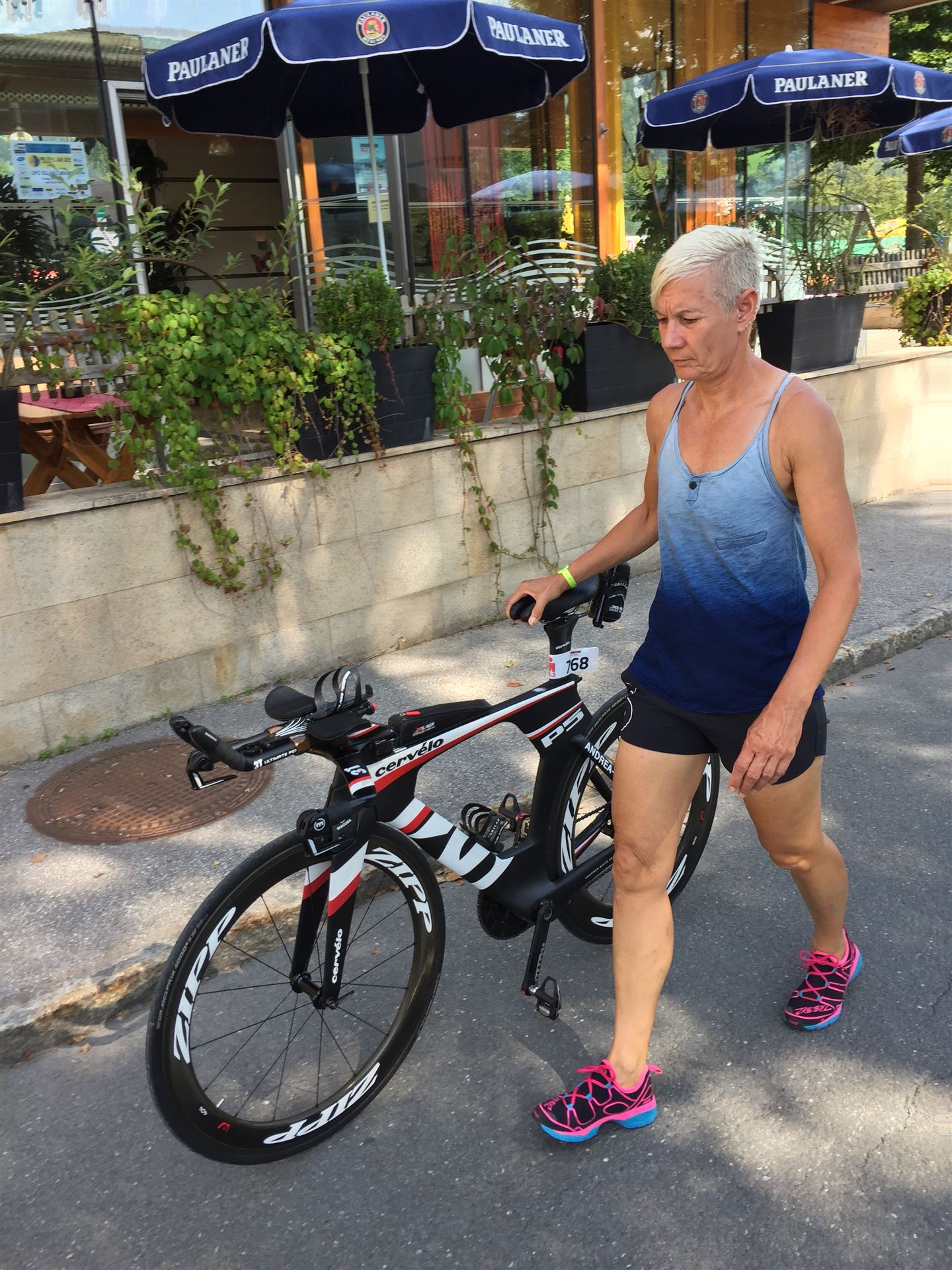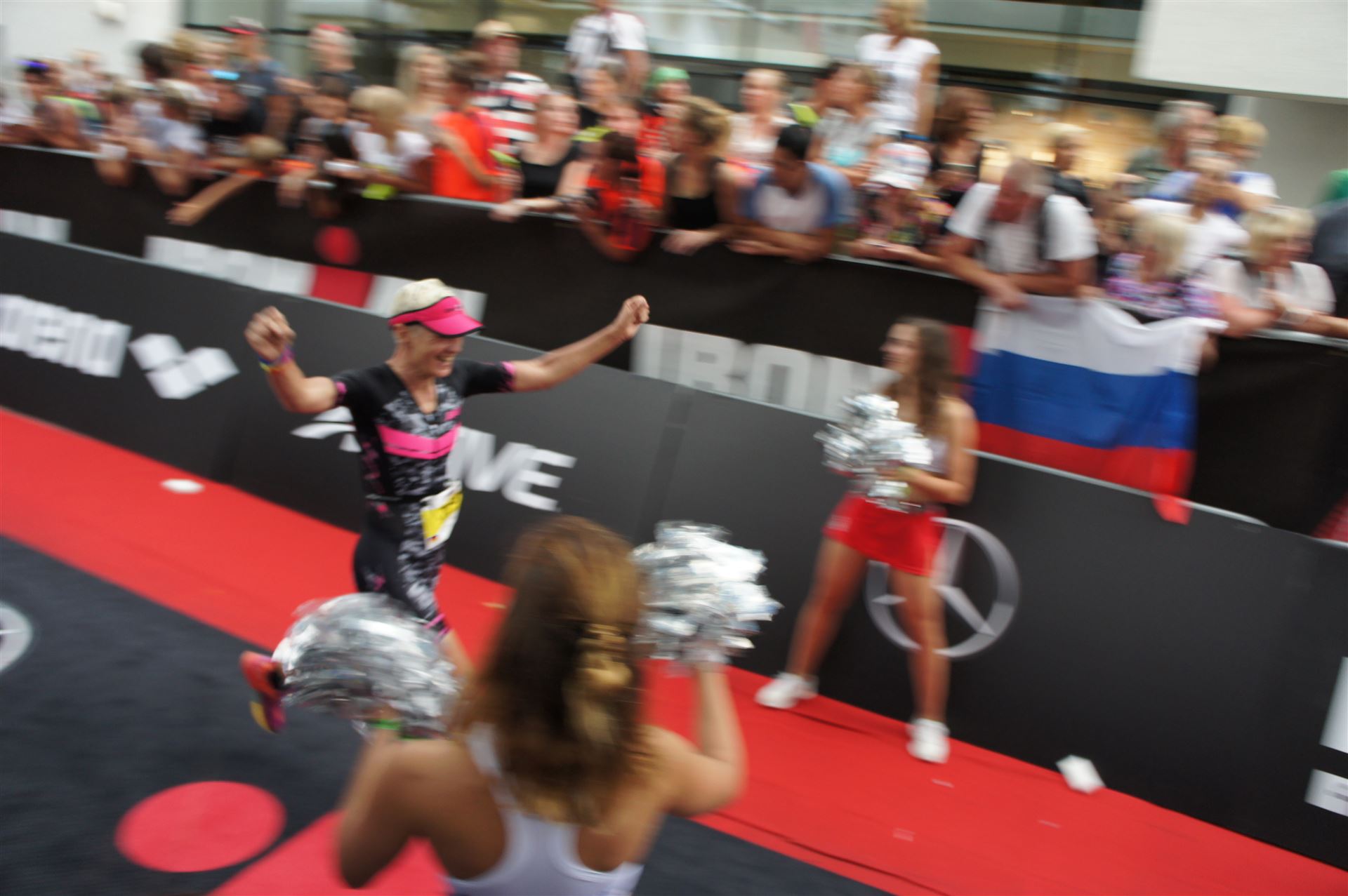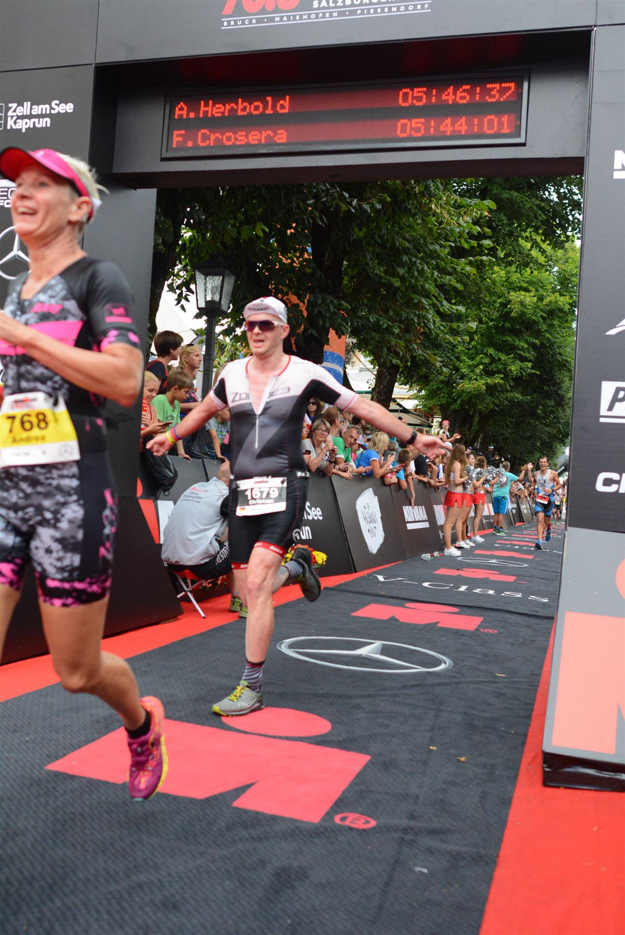 Die ersten 2-3 Kilometer fallen mir sehr schwer. Die Beine sind müde und ich kann mein Tempo nicht finden, was sehr ungewöhnlich für mich ist. Normalerweise habe ich keine Anlaufprobleme nach dem Rad. Meinem Rücken geht es sehr gut, daran kann es nicht liegen. Nachdem ich eine Runde durch die Stadt gelaufen bin und die Zuschauer mich angefeuert und motiviert haben geht es mir langsam besser. Mein Kopf ist positiv und die nächsten 18 Kilometer können kommen. Die Strecke führt am See entlang, ein tolles Panorama. Die Strecke ist teilweise Asphalt aber auch viel Schotter. Man gewöhnt sich irgendwann an den Schotter, die Zuschauer und die tolle Strecken helfen dabei. Gesamt werden 2 Runden mit einigen hoch-tief Passagen gelaufen. Das Ziel ist direkt in der Stadt. Die Finisherline ist voll, man wird angefeuert, es wird gejubelt, eine ganz tolle Stimmung. Für den Halbmarathon habe ich eine Zeit von 1:53:04 benötigt.