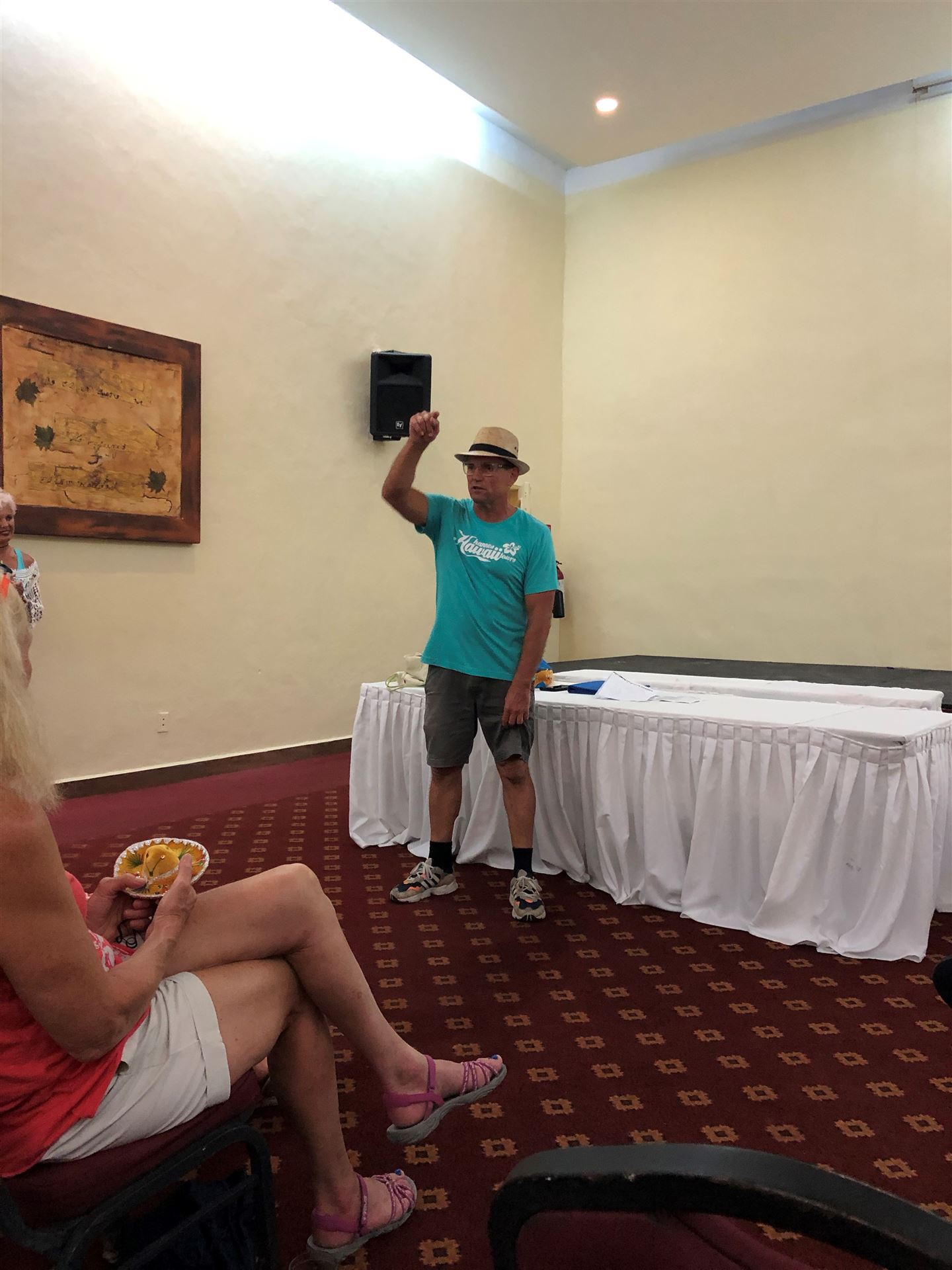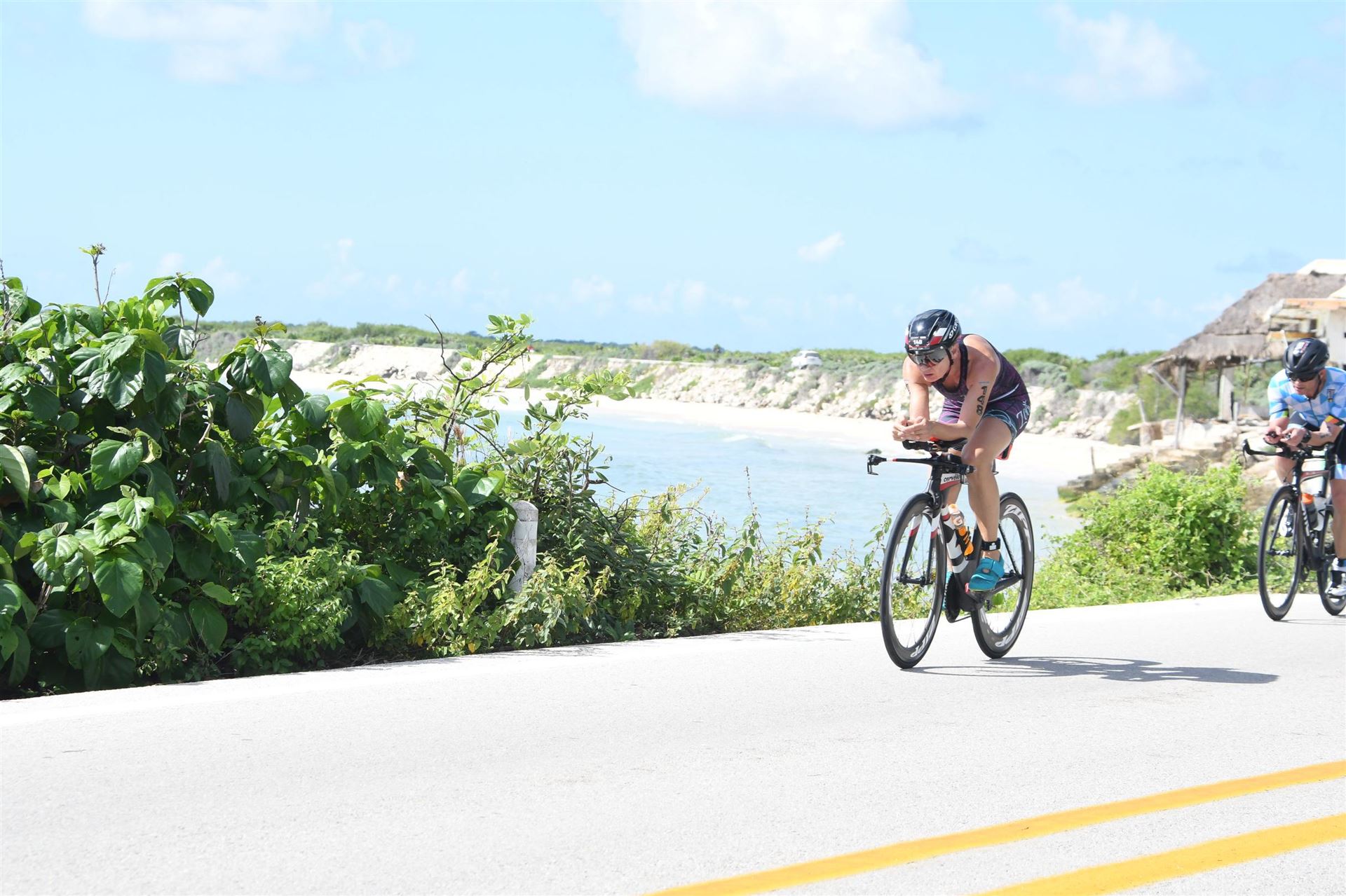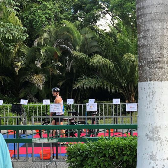 Man kann nachts relativ gut schlafen, die Temperaturen sind angenehm. Wir sind heute früh auf. Heute steht die erste Radeinheit auf dem Plan. Wir fahren einen Teil der Wettkampfstrecke ab. Es ist sehr windig, da muss man stellenweise aufpassen. Nach ein paar Kilometern hat man sich daran gewöhnt. Unterwegs trifft man einige Athleten. Direkt am Meer ist der Wind ganz schön arg. Die Landschaft ist toll, alles grün. Sehr wenig Autoverkehr. Nach dem Rad gibt es noch einen Koppellauf, inzwischen ist es gut warm. Das Meer ist heute auch sehr wellig und aufgewühlt. Es hängt die rote Fahne. Zum Mittagessen sitzen wir mit Blick aufs Meer im Beachrestaurant. Das ist Urlaub. Am Abend probieren wir die internationale Küche in einem weiteren Spezialitätenrestaurant aus. Tolles Essen, super Ambiente und ganz tolle Bedienung. Nach einem kleinen Absacker geht es Richtung Zimmer bzw. Bett. Ach übrigens, hier gibt es ganz viele Nasenbären, sehr zutraulich. Man muss aufpassen, die kommen ins Zimmer.