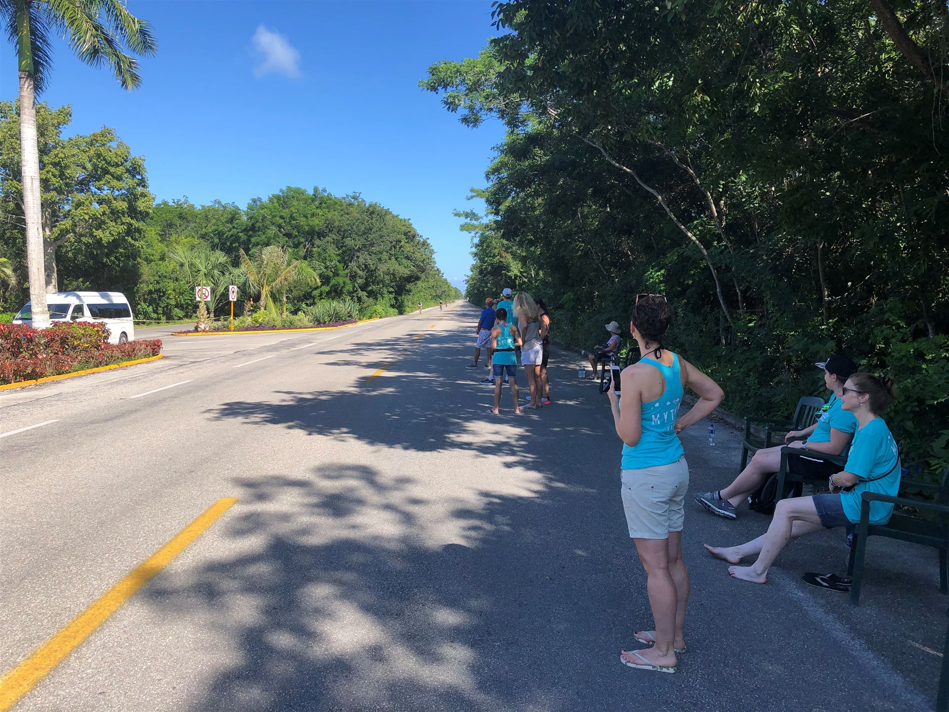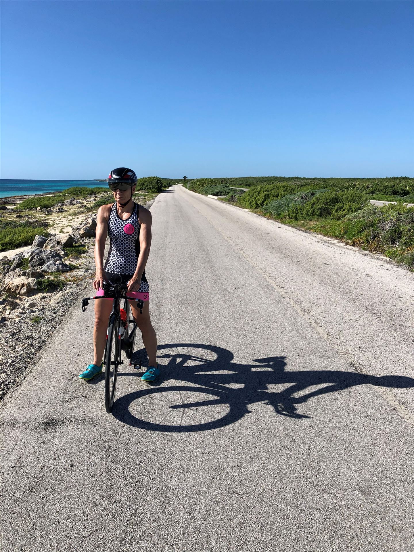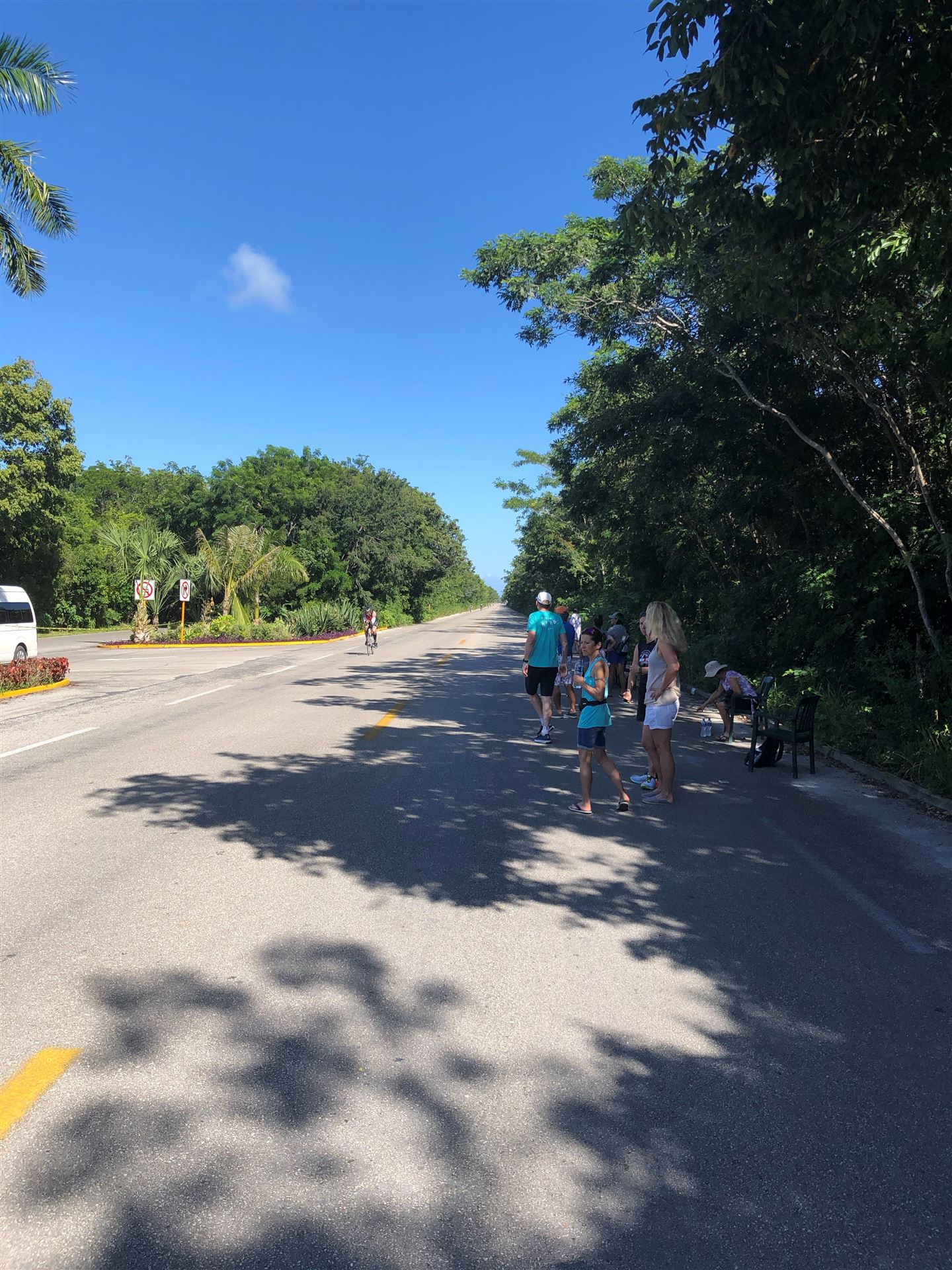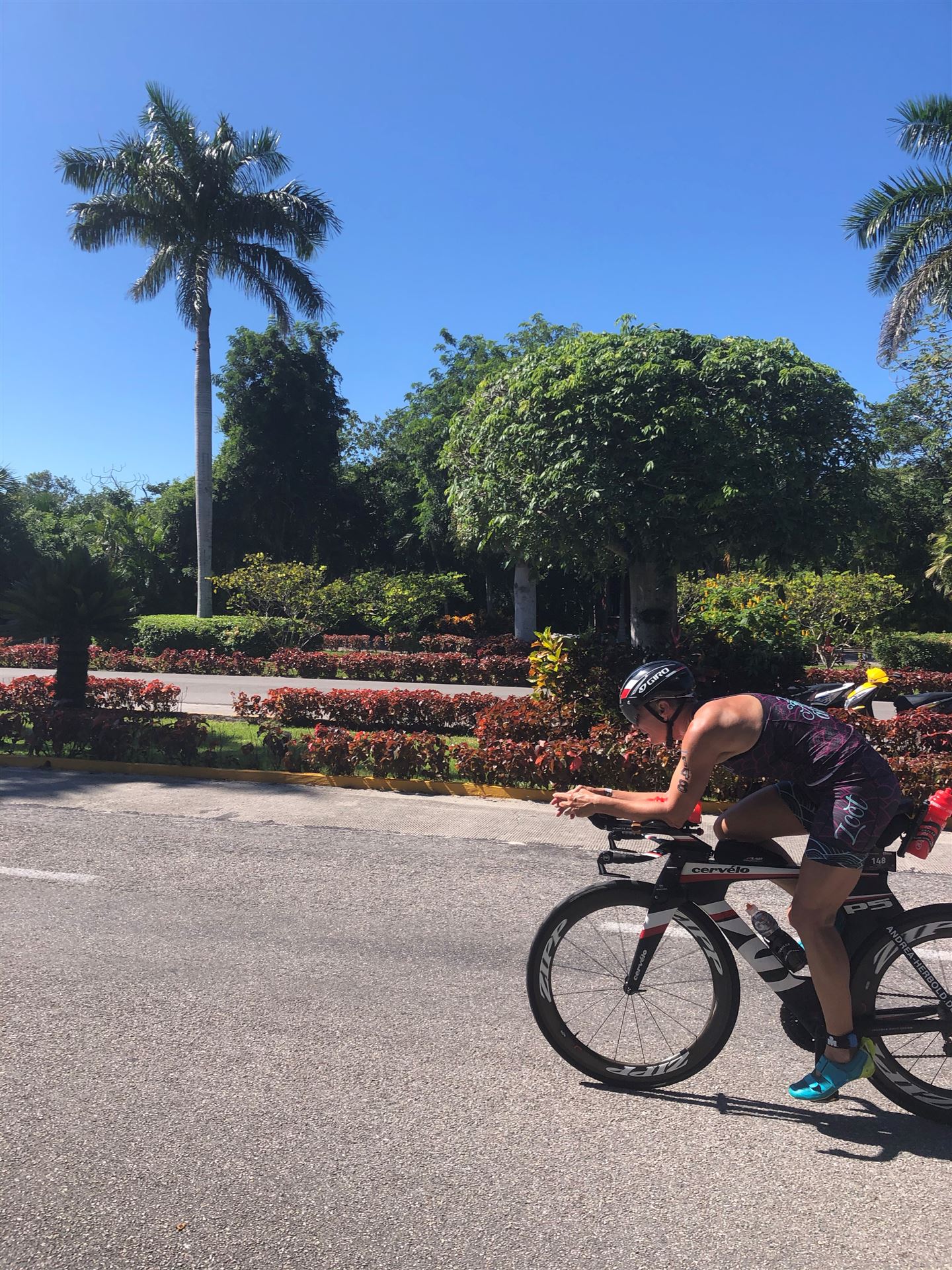 Um kurz vor 7:00 Uhr ist die Nacht vorbei. Da es relativ früh dunkel wird, steht man auch entsprechend früh auf. Nach dem Frühstück geht es mit dem Rad los. Einmal die Wettkampfstrecke abfahren, sprich einmal um die Insel. Inzwischen sind einige Athleten unterwegs. Es gibt einen tollen Radweg, der fast komplett parallel zur Straße geht. Es gibt kaum Verkehr, der Wind ist okay, die Wettkampfstrecke ohne Überraschungen. Unterwegs gibt es sogar Schilder mit dem Hinweis Athleten im Training. Eine Runde sind circa 63 Kilometer, fast alles mit Radweg. Nur das Stück durch die Stadt ist etwas blöd, der Rest jedoch perfekt. Im Anschluss an das Rad fahren stehen noch 30 Minuten lockere Grundlage Laufen auf dem Plan. Danach liegen wir etwas im Schatten am Pool. Inzwischen sind noch einige Athleten im Club angekommen. Zum Abendessen gibt es heute mal Buffet, danach noch etwas chillen und dann ab ins Bett.