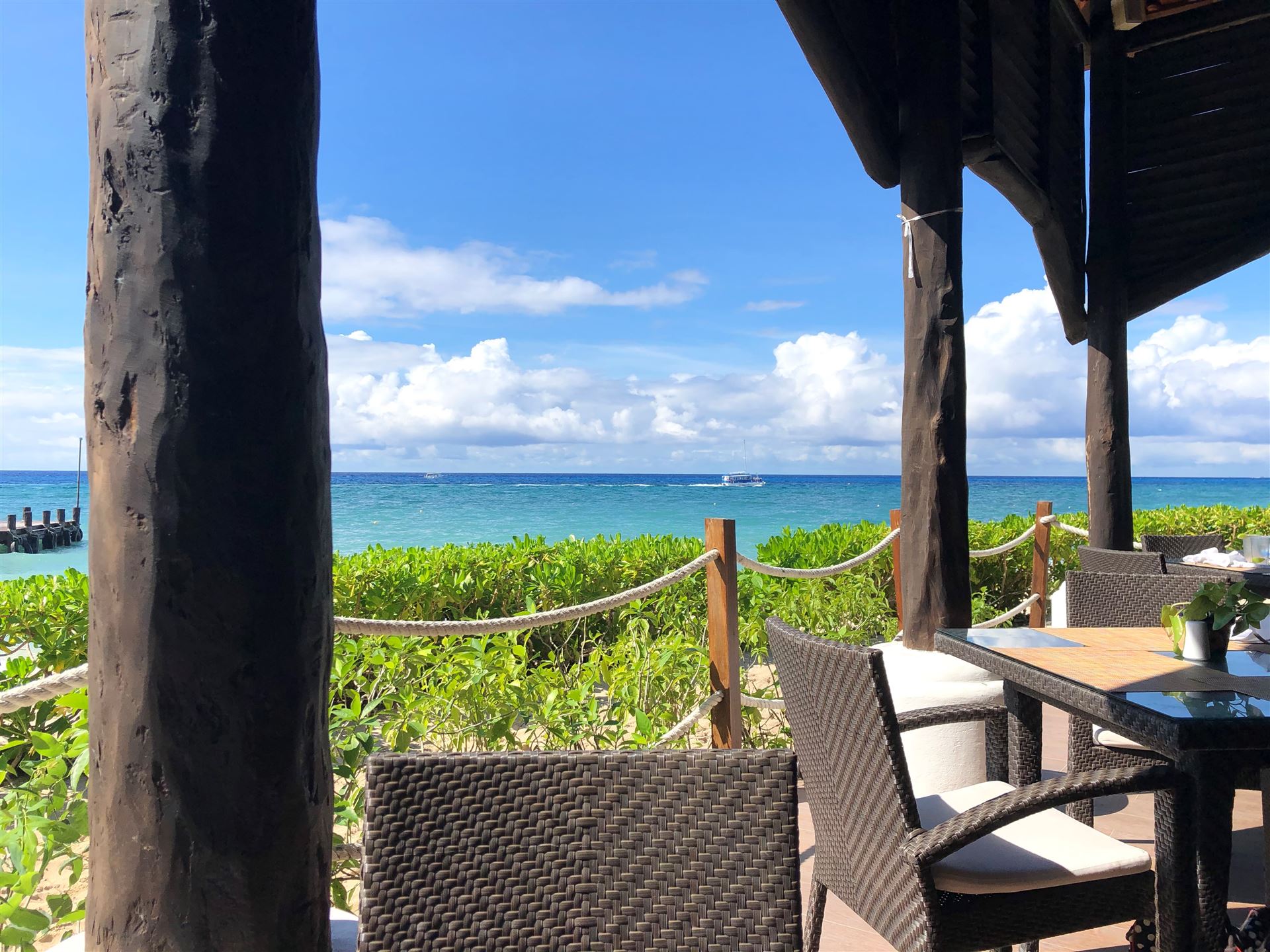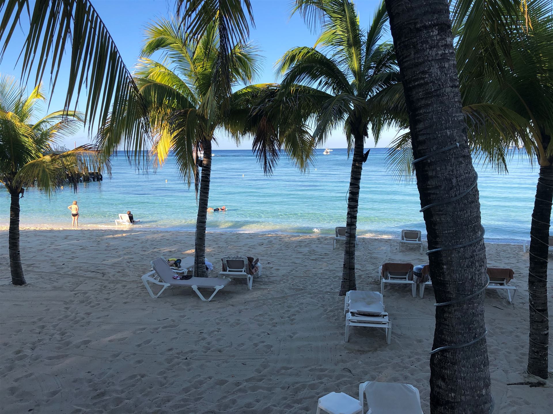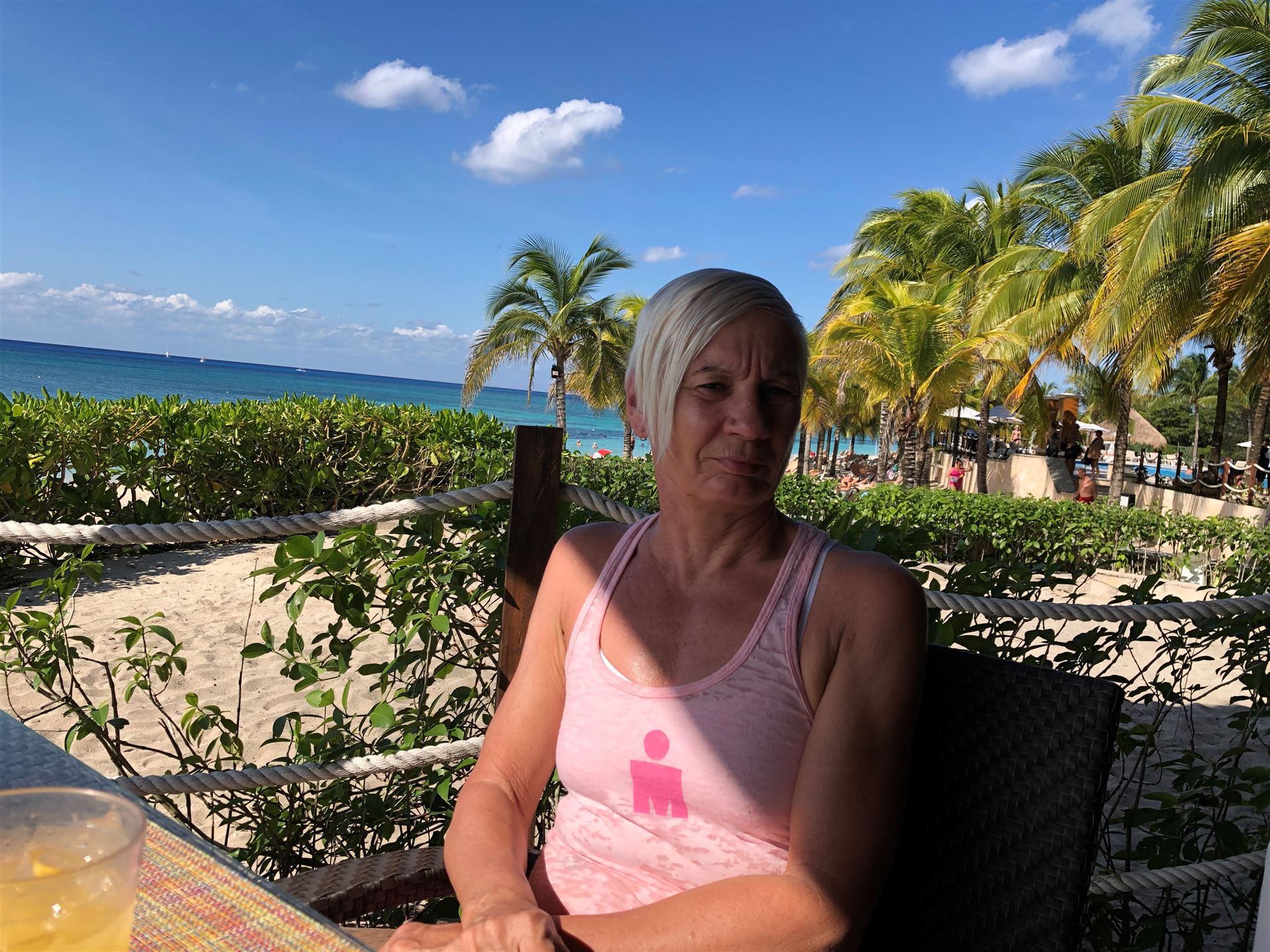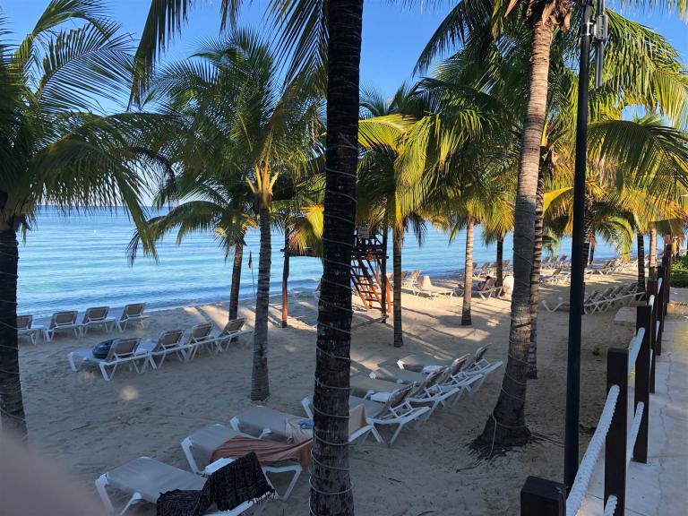 Die Anreise nach Cozumel hat relativ gut geklappt. Wir sind leider etwas später in Frankfurt abgeflogen und hatten bei der Ankunft in Cancun 1 Stunde Verspätung. Die Einreise nach Mexiko ist nervig. Ewig lange Schlangen, in der Summe hat es zwei Stunden gedauert, bis wir endlich draußen waren. Erfreulich war, dass unser Gepäck bereits abholbereit da stand. Am Ausgang wurden wir bereits erwartet, innerhalb von 5 Minuten war ein Taxi da und es ging in Richtung Fährhafen, die Tickets waren bereit für uns reserviert. Die Fahrt war relativ lange. Das letzte Stück mussten wir zu Fuß gehen Mit zwei Rädern und zwei Koffern über Kopfsteinpflaster, das macht Laune. Unterwegs wurde uns von Mexikanern zugerufen wir sollen uns beeilen, die Fähre legt in 4 Minuten ab. Also noch einmal Tempo zugelegt und gerade noch geschafft. Auf der Fähre gab es Livemusik, Songs von Santana. Mal etwas anderes.