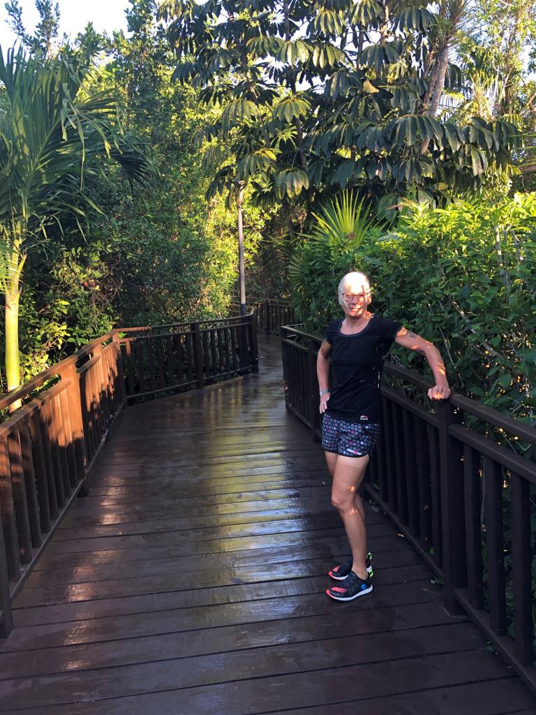 Um 7:00 Uhr war die Nacht vorbei. Es ist bereits hell und sehr warm. An das Klima muss man sich erst noch gewöhnen. Zunächst müssen wir uns auf dem Gelände orientieren. Es ist alles sehr weitläufig und sieht gleich aus. Die verschiedenen Pools sowie das Meer haben wir gleich entdeckt. Danach geht es zum Frühstück. Es ist angenehm, nicht zu voll. Das Buffet ist reichlich, für jeden Geschmack etwas dabei. Danach werden die Räder aufgebaut. Werner ist sehr geübt, das geht relativ schnell. Am Nachmittag steht noch 40 Minuten Laufen dem Plan. Es gibt direkt am Hotel einen sehr gut ausgebauten Radweg, da kann Werner mich mit dem Rad begleiten. Für den Abend haben wir uns einen Platz im mexikanischen Spezialitätenrestaurant reserviert. Das Essen ist sehr lecker. Danach noch etwas relaxen, wir fallen relativ früh ins Bett.