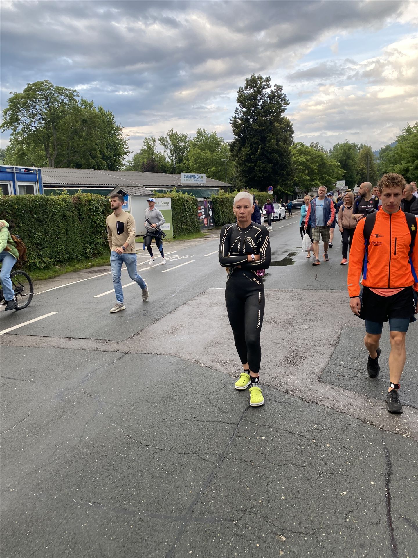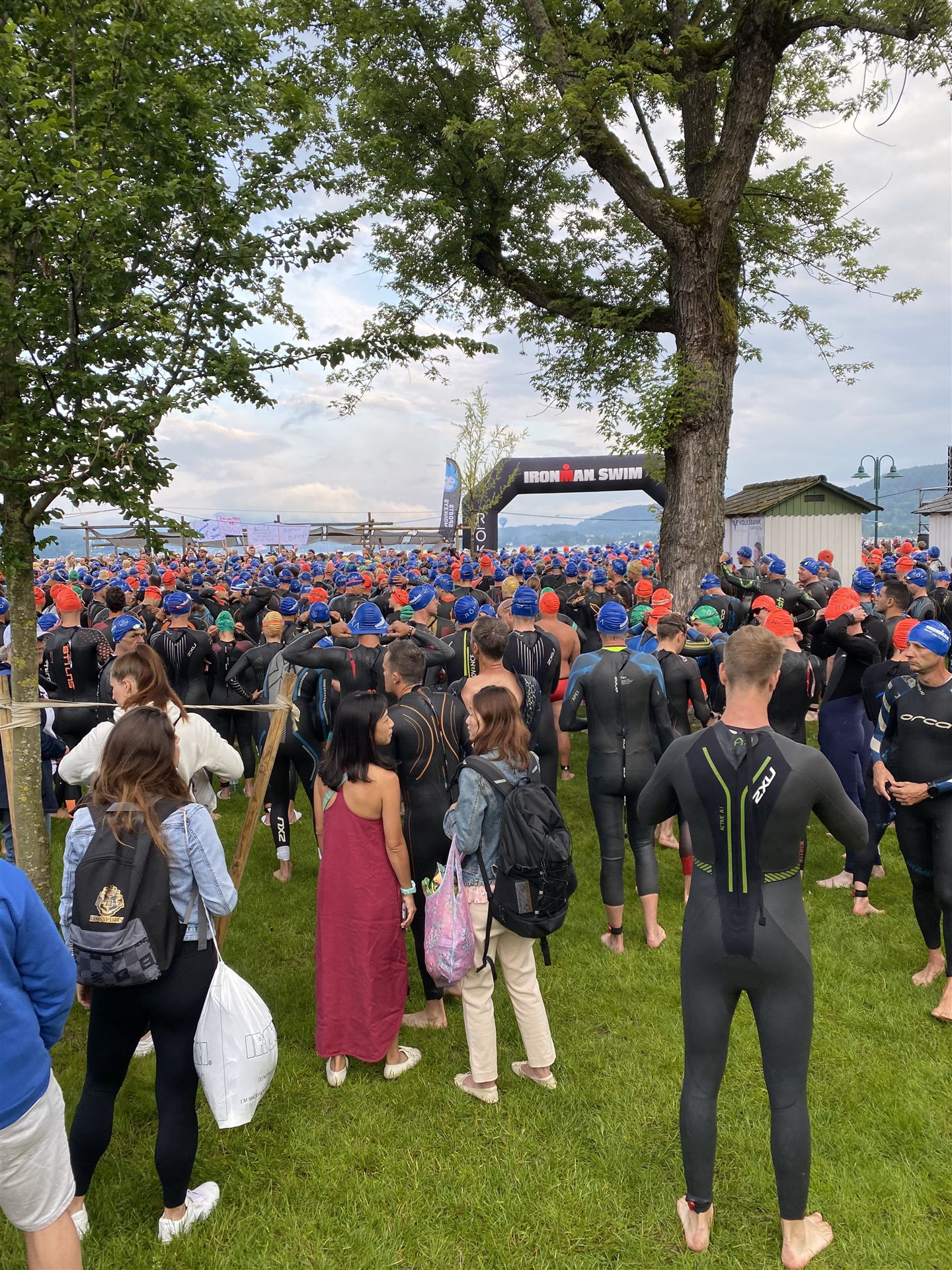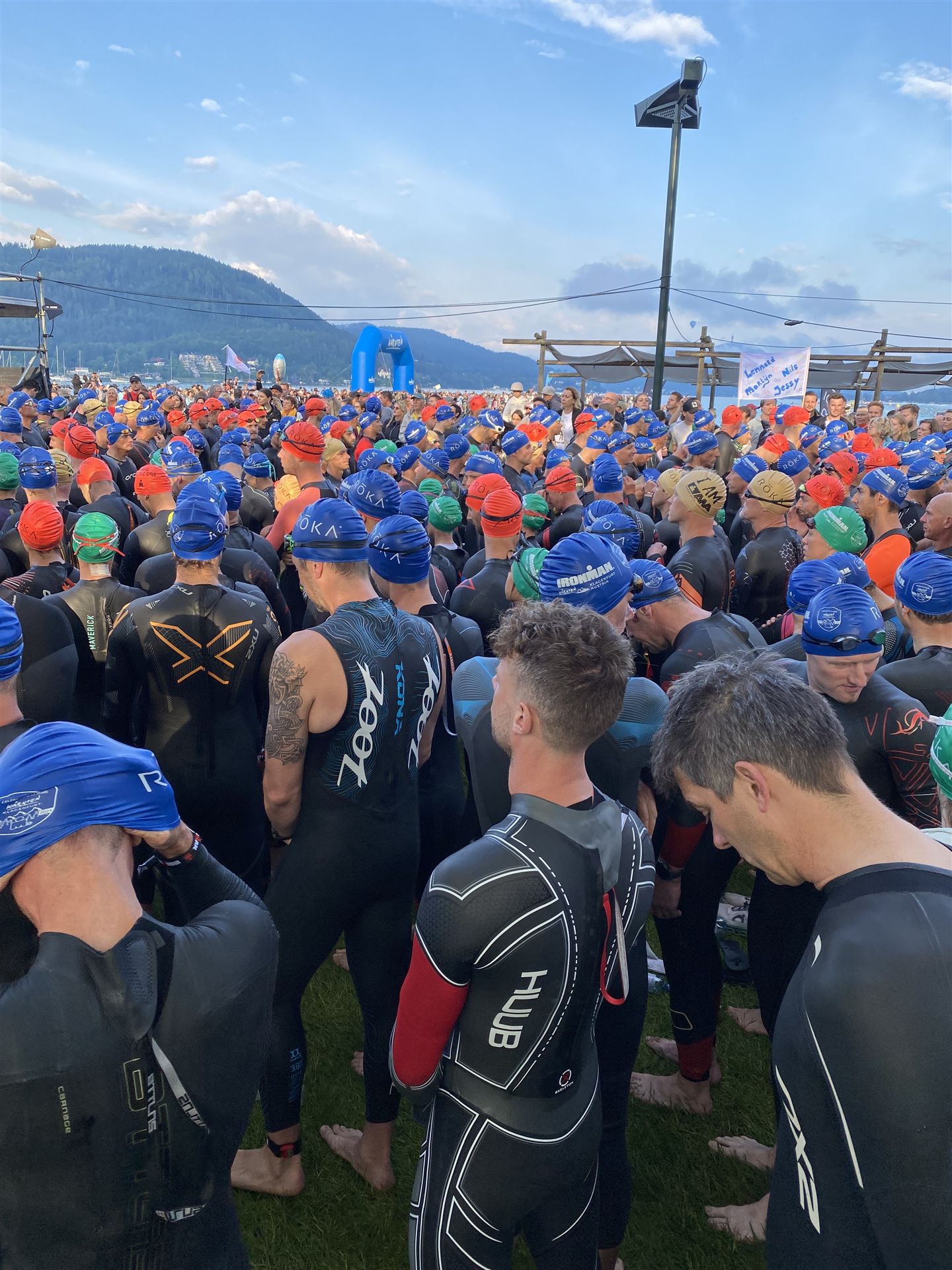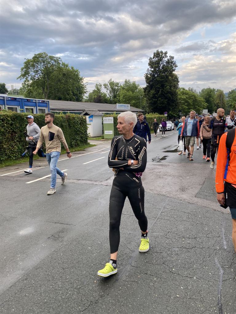 Normalerweise mache ich gerne vor der ersten Langdistanz eine Mitteldistanz um meine Form zu prüfen. In diesem Fall stand am 16.06.2024 direkt eine Langdistanz in Österreich an. Der IM in Klagenfurt ist ein sehr schöner Wettkampf, an dem ich bereits mehrmals teilgenommen habe. Die Wettervorhersage für den Wettkampftag war durchwachsen. Ich mag gerne warme Temperaturen, je wärmer desto besser. In diesem Fall lag die Vorhersage bei circa 22-23 Grad Lufttemperatur mit etwas Regen. Die Wassertemperatur lag ebenfalls bei knapp 20 Grad, keine Bedingungen, die ich gerne mag. Aber egal, das Leben ist kein Wunschkonzert und das Wetter kann man nicht beeinflussen. Die Nacht vor dem Wettkampf ist immer etwas kurz, man schläft auch etwas unruhig. Bereits um 3:30 Uhr war ich wach und bin auch direkt aufgestanden. Für den Wettkampf habe ich bereits alles gerichtet. Die Wechselzone öffnet am Wettkampftag um 5:00 Uhr, ich bin pünktlich da und pumpe noch einmal meine Reifen auf und fülle Getränke und Gel auf. Während der ganzen Zeit regnet es, es kann nur noch besser werden. Erstaunlicherweise nimmt man solche Dinge am Wettkampftag einfach hin, man hat keinen Einfluss.