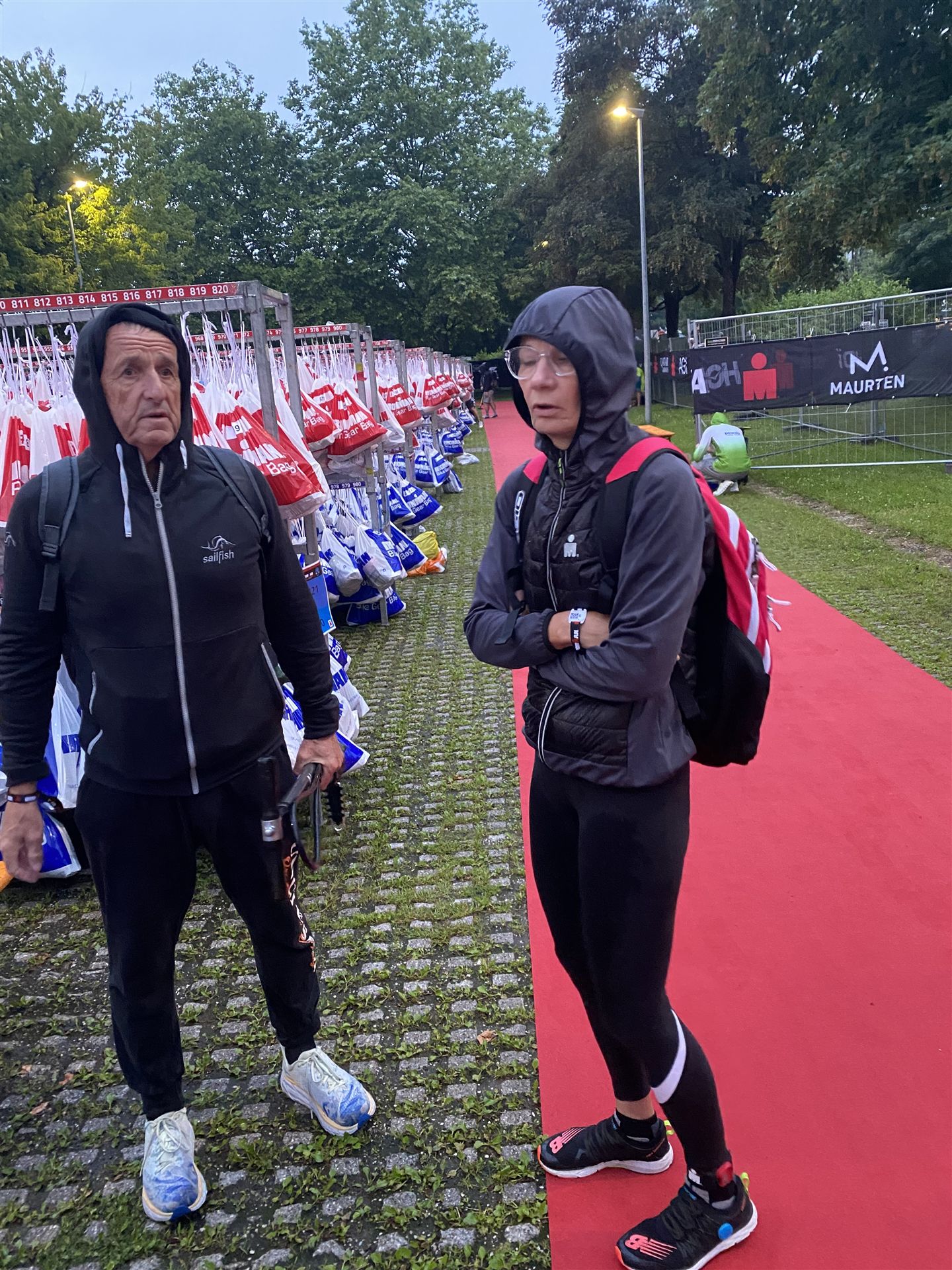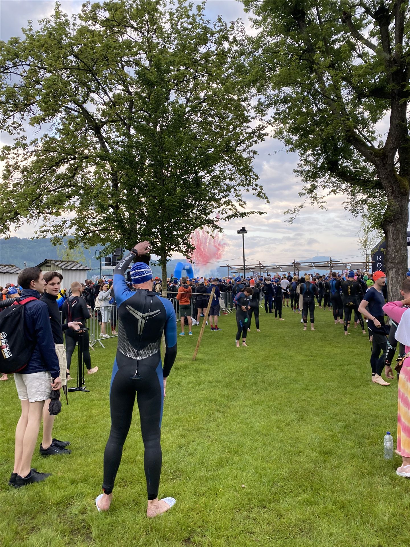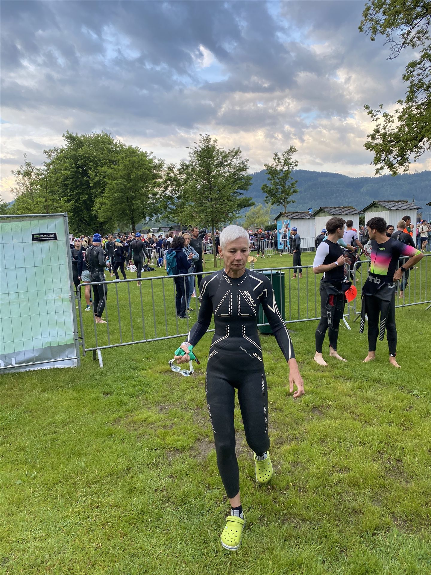 Normalerweise mache ich gerne vor der ersten Langdistanz eine Mitteldistanz um meine Form zu prüfen. In diesem Fall stand am 16.06.2024 direkt eine Langdistanz in Österreich an. Der IM in Klagenfurt ist ein sehr schöner Wettkampf, an dem ich bereits mehrmals teilgenommen habe. Die Wettervorhersage für den Wettkampftag war durchwachsen. Ich mag gerne warme Temperaturen, je wärmer desto besser. In diesem Fall lag die Vorhersage bei circa 22-23 Grad Lufttemperatur mit etwas Regen. Die Wassertemperatur lag ebenfalls bei knapp 20 Grad, keine Bedingungen, die ich gerne mag. Aber egal, das Leben ist kein Wunschkonzert und das Wetter kann man nicht beeinflussen. Die Nacht vor dem Wettkampf ist immer etwas kurz, man schläft auch etwas unruhig. Bereits um 3:30 Uhr war ich wach und bin auch direkt aufgestanden. Für den Wettkampf habe ich bereits alles gerichtet. Die Wechselzone öffnet am Wettkampftag um 5:00 Uhr, ich bin pünktlich da und pumpe noch einmal meine Reifen auf und fülle Getränke und Gel auf. Während der ganzen Zeit regnet es, es kann nur noch besser werden. Erstaunlicherweise nimmt man solche Dinge am Wettkampftag einfach hin, man hat keinen Einfluss.